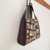 縁取りが印象的な台形のハンドバッグです。