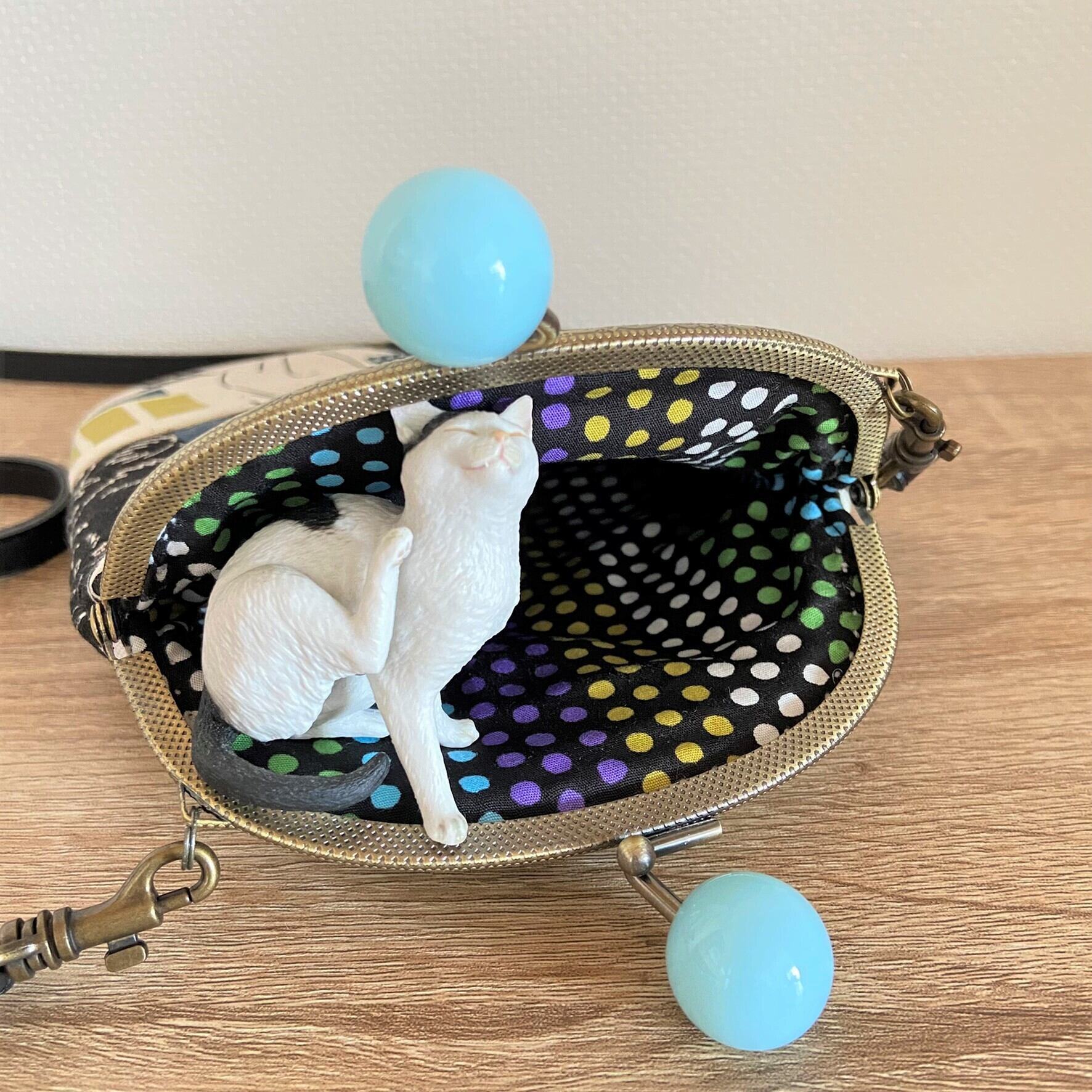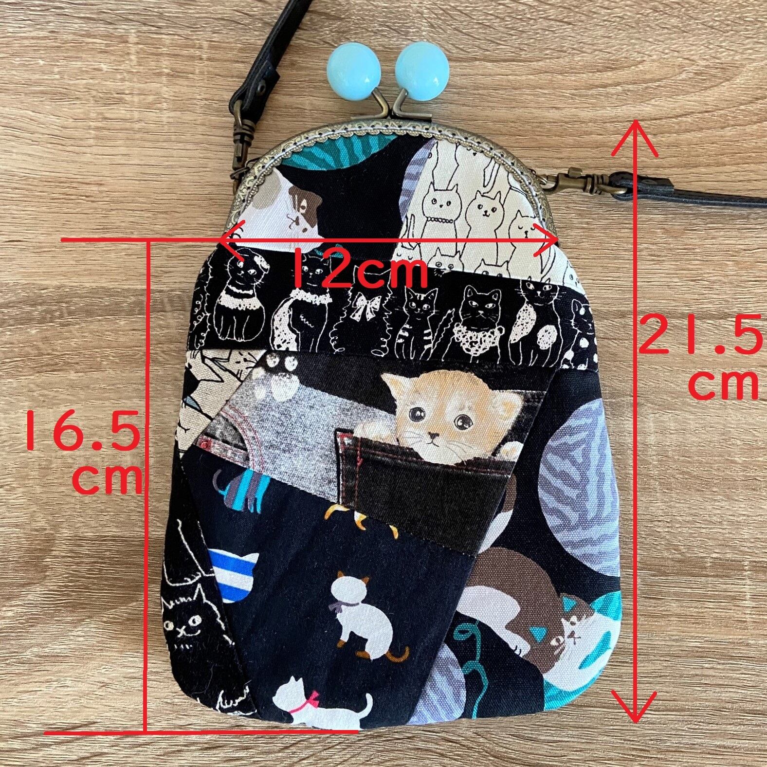 がま口を使ったスマホ用ポシェットです。