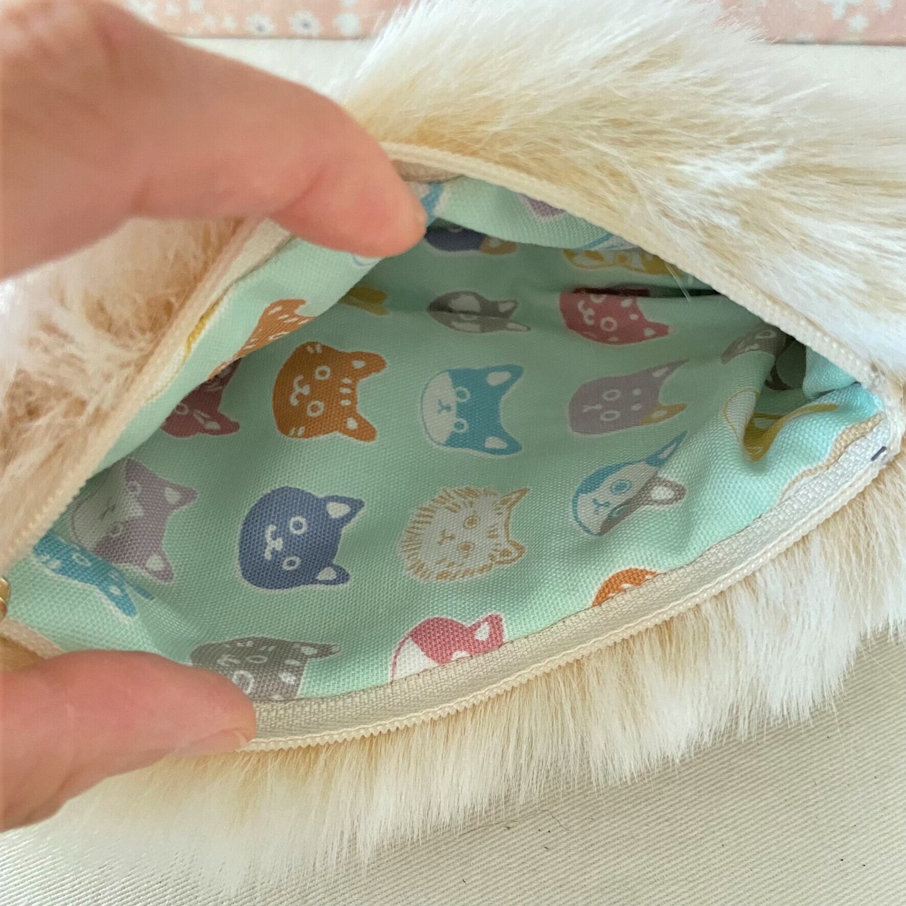 毛足20㎜ほどのファー生地で、ふわふわと柔かい手触りです。