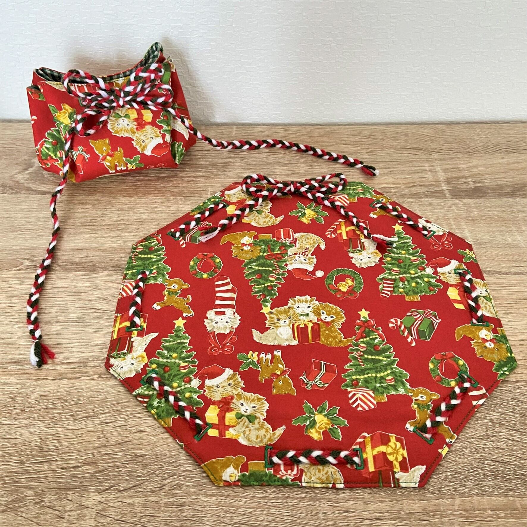 八角形の周囲にぐるりとリボンを通しているので、ぎゅっと引き絞ると巾着になります。