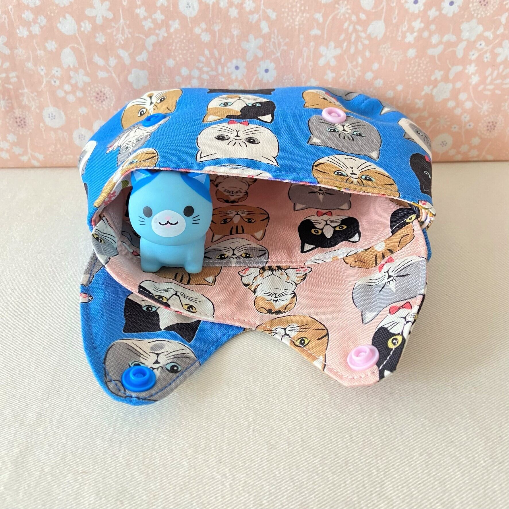 両方のフラップを開けると、ポーチ全体が猫の形になります。