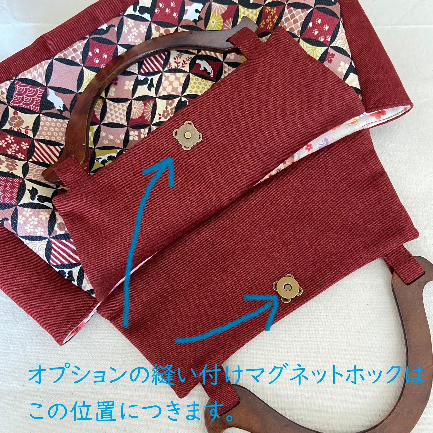 オプションで入れ口に縫い付けマグネットホックを付けられます。(写真9枚目)