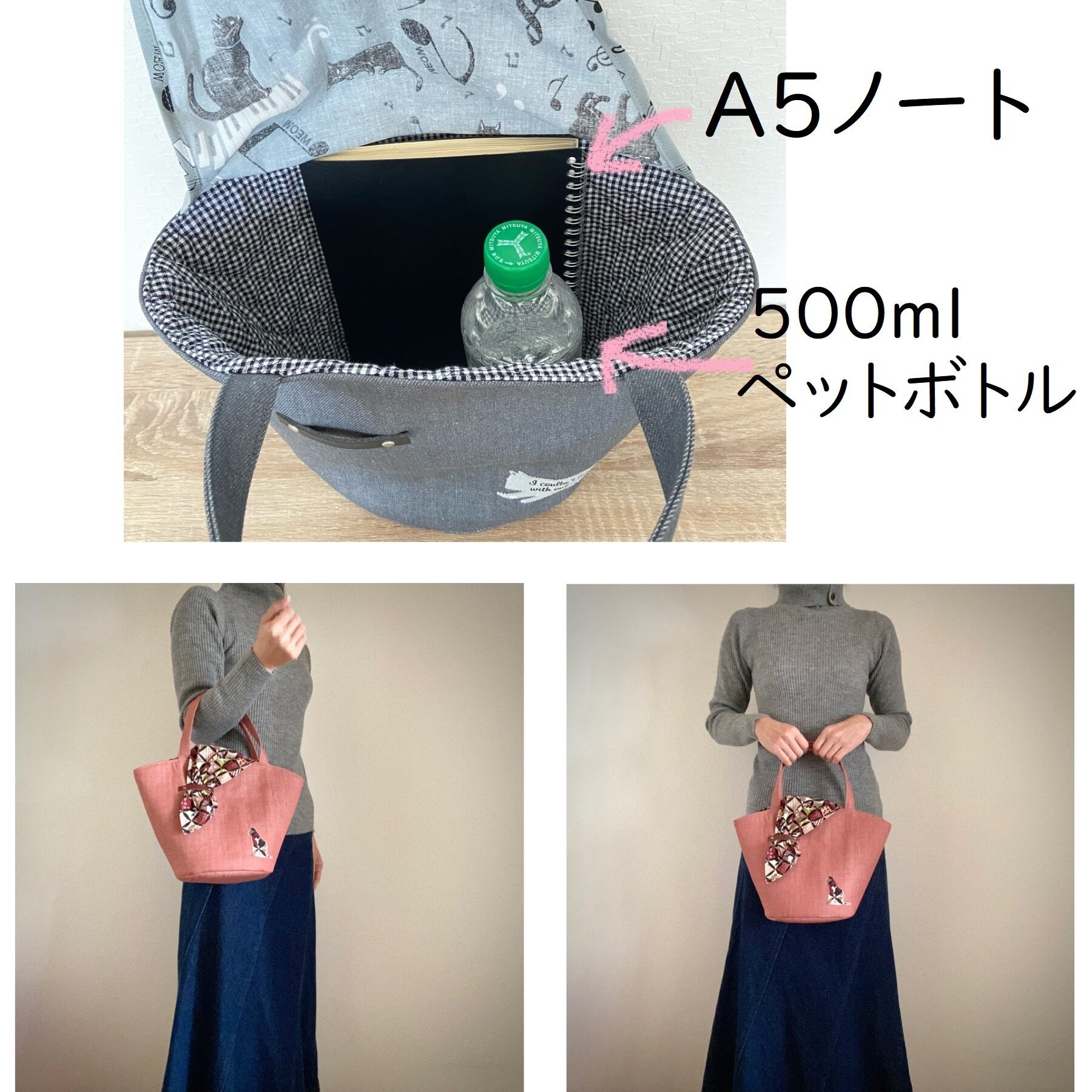 8枚目の写真は同じサイズのバッグにA5ノートと500mlペットボトルを入れたところです。