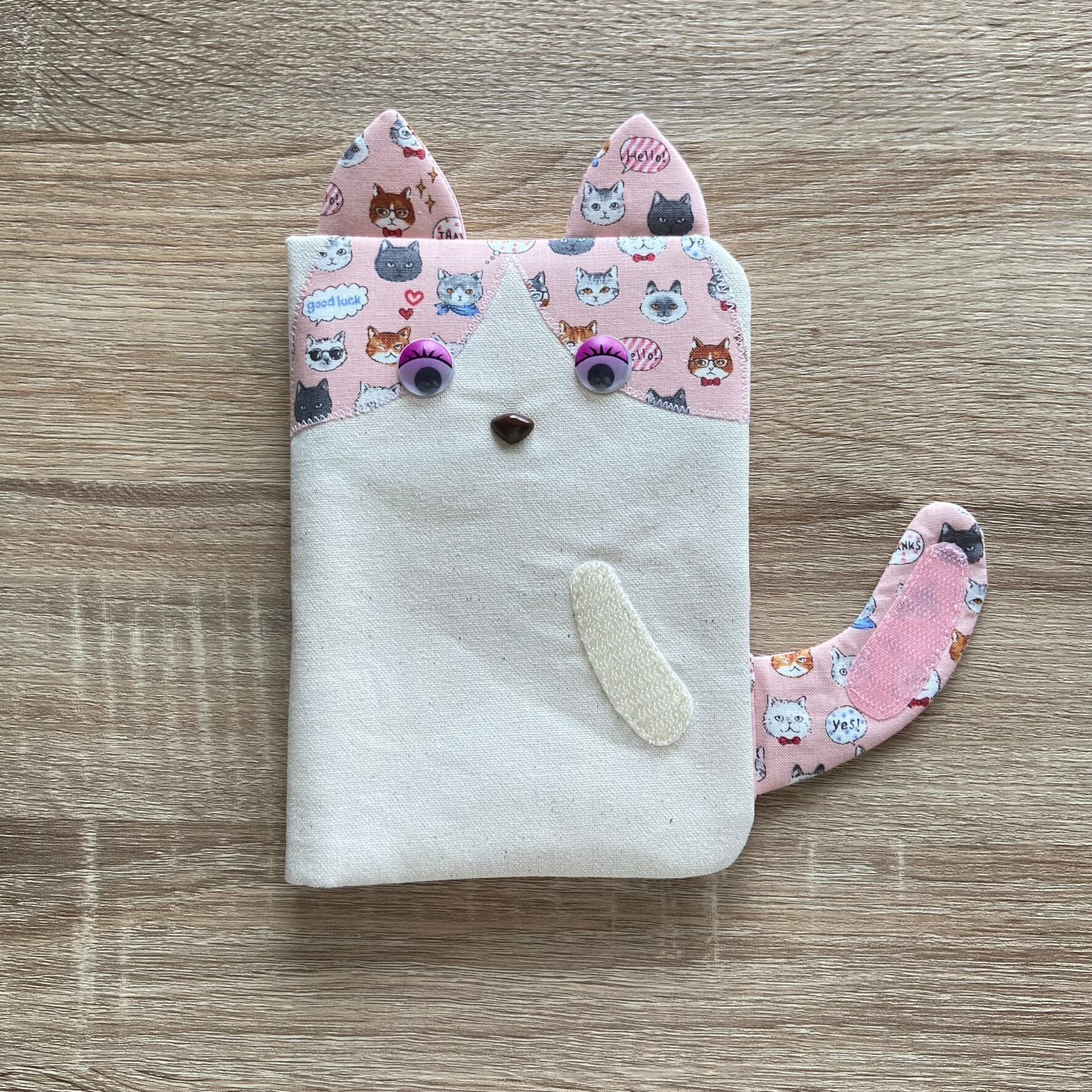 ネコの形のおくすり手帳ケースです。