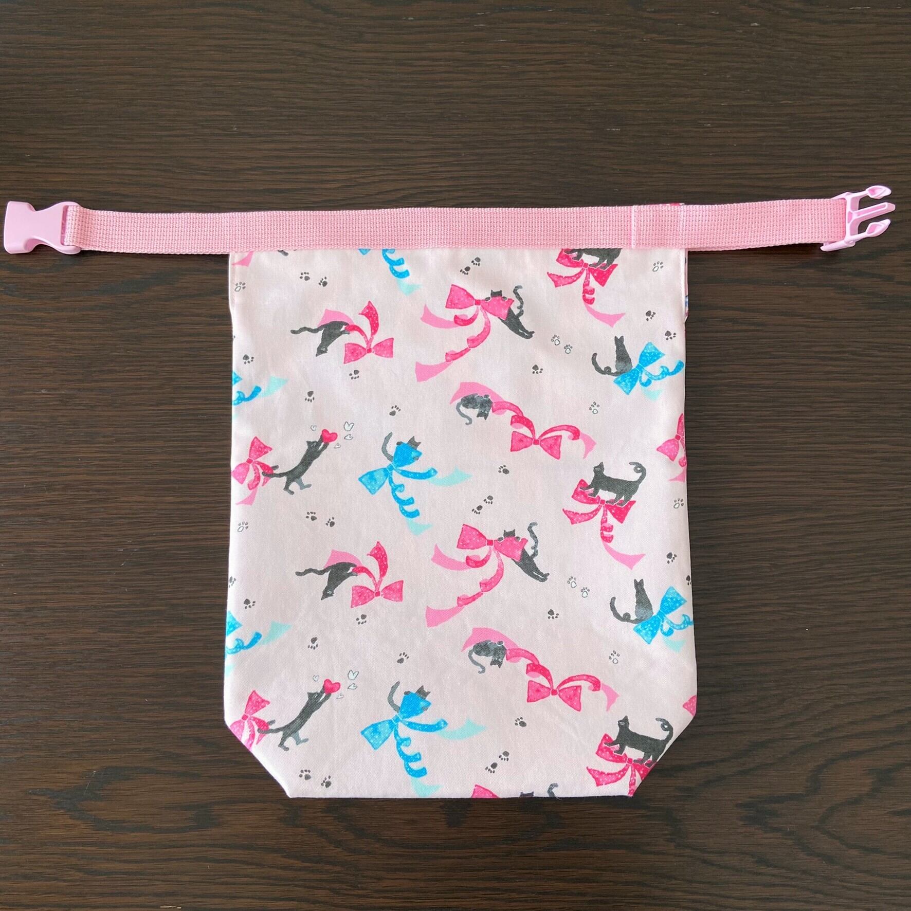 入れ口にバックル付きのアクリルテープを縫い付けたバッグです。