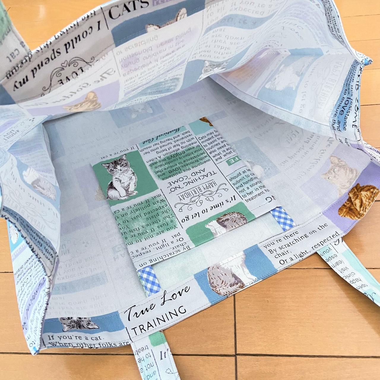一枚仕立てですが、サイドは袋縫い、底まちの縫い代はバイアステープで始末し、しっかりとしたバッグに仕上げています。