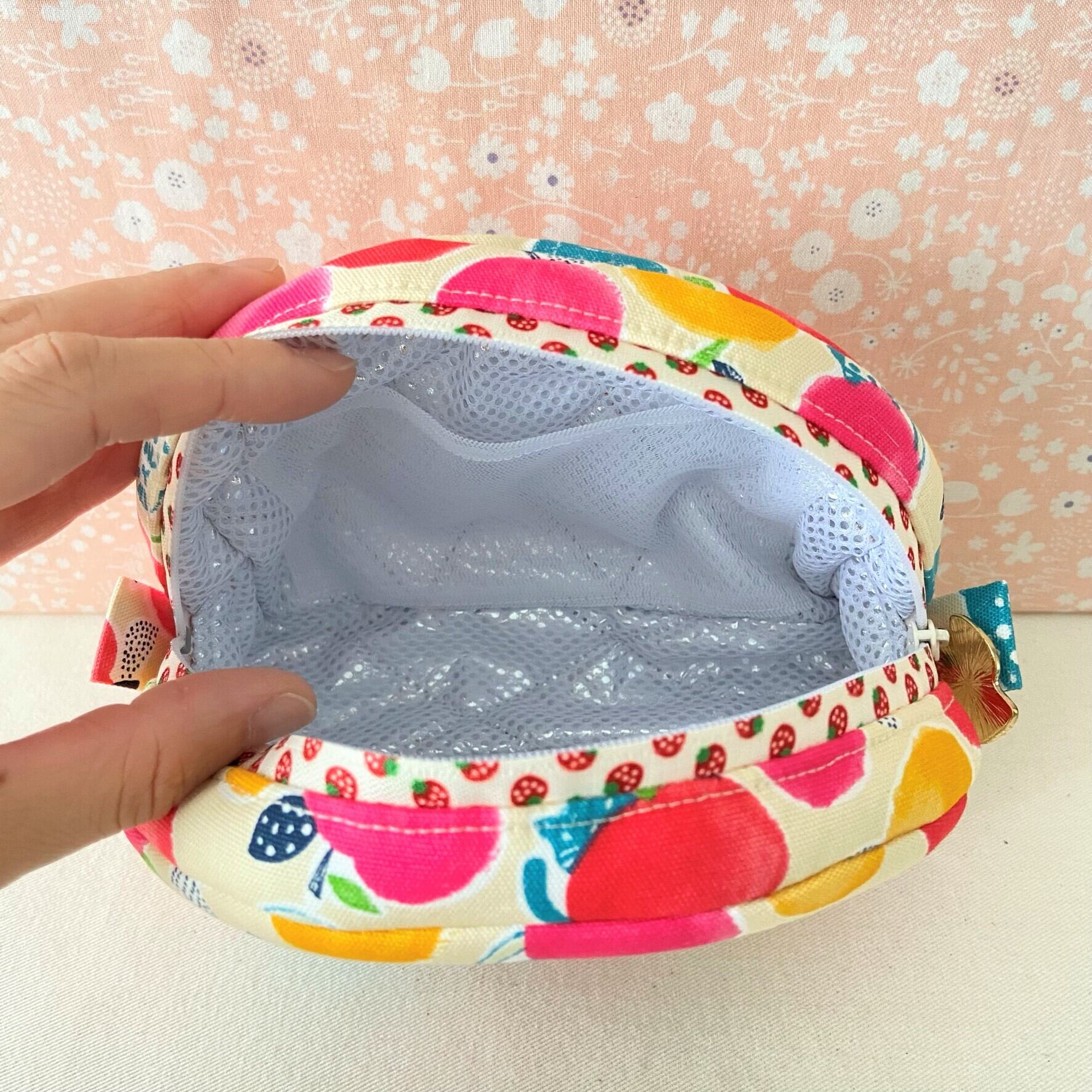 内側には保冷剤を入れる用のメッシュポケットを付けました。