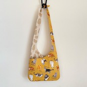 裏側には色違いの猫柄生地を使用し、色味もアシンメトリーにしました。