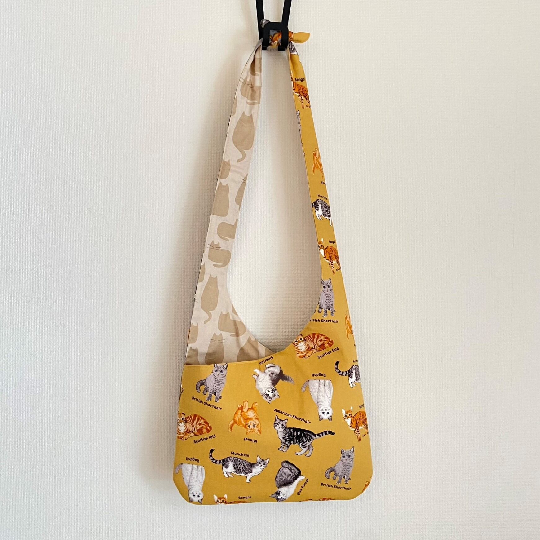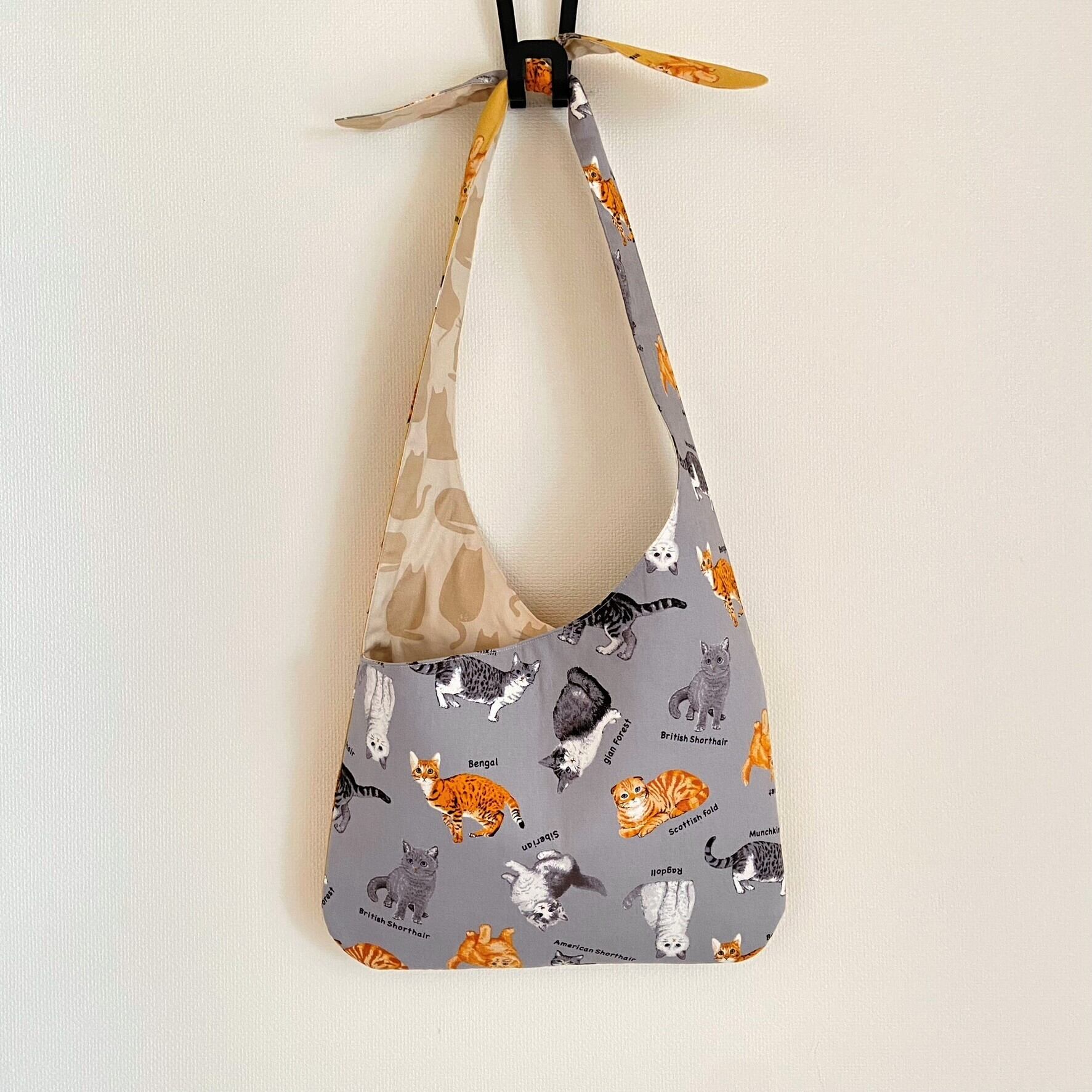 持ち手の部分の内布が見えるので、内布にも猫柄生地を使用しました。