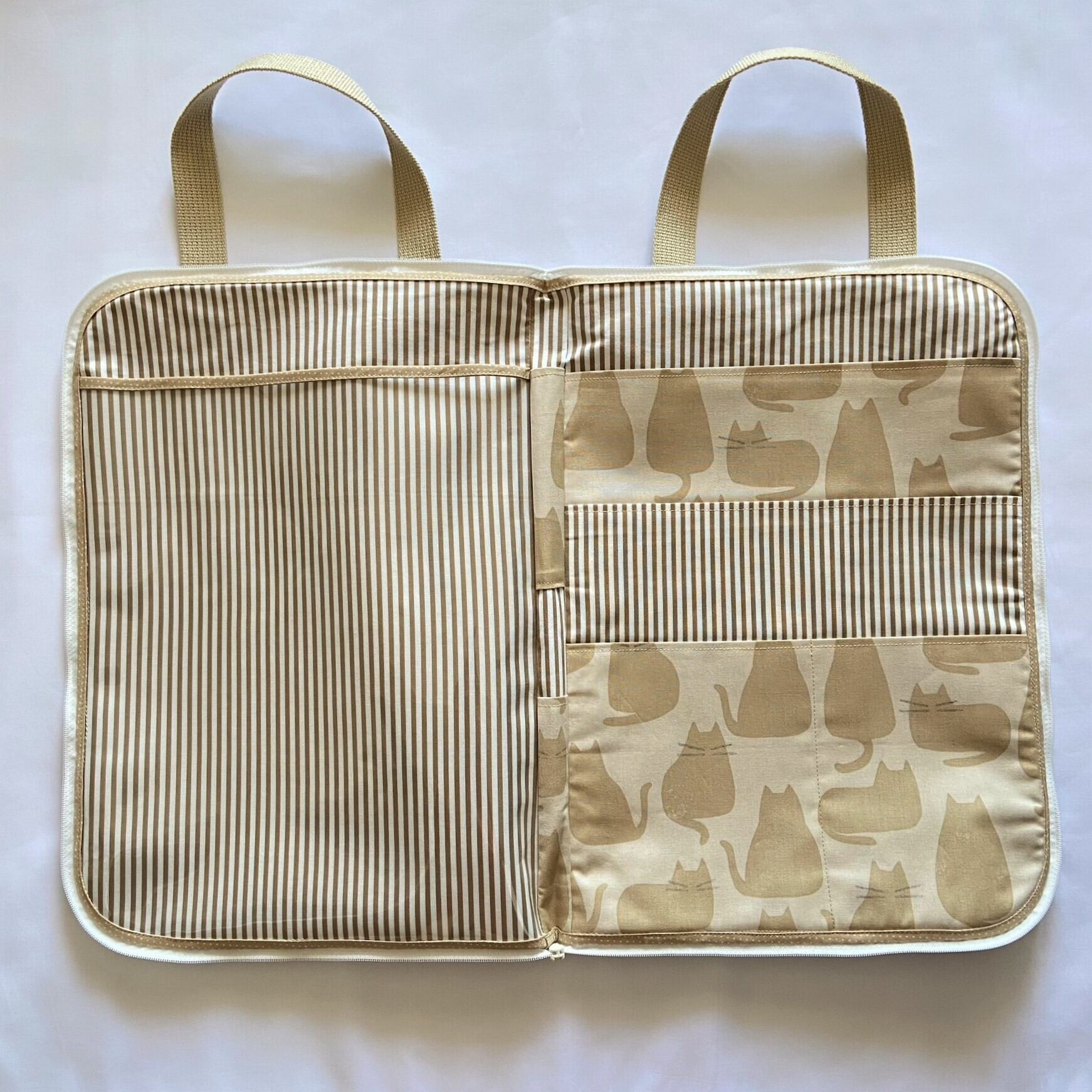 3辺にぐるりとファスナーを縫い付けているので、大きく開きます。