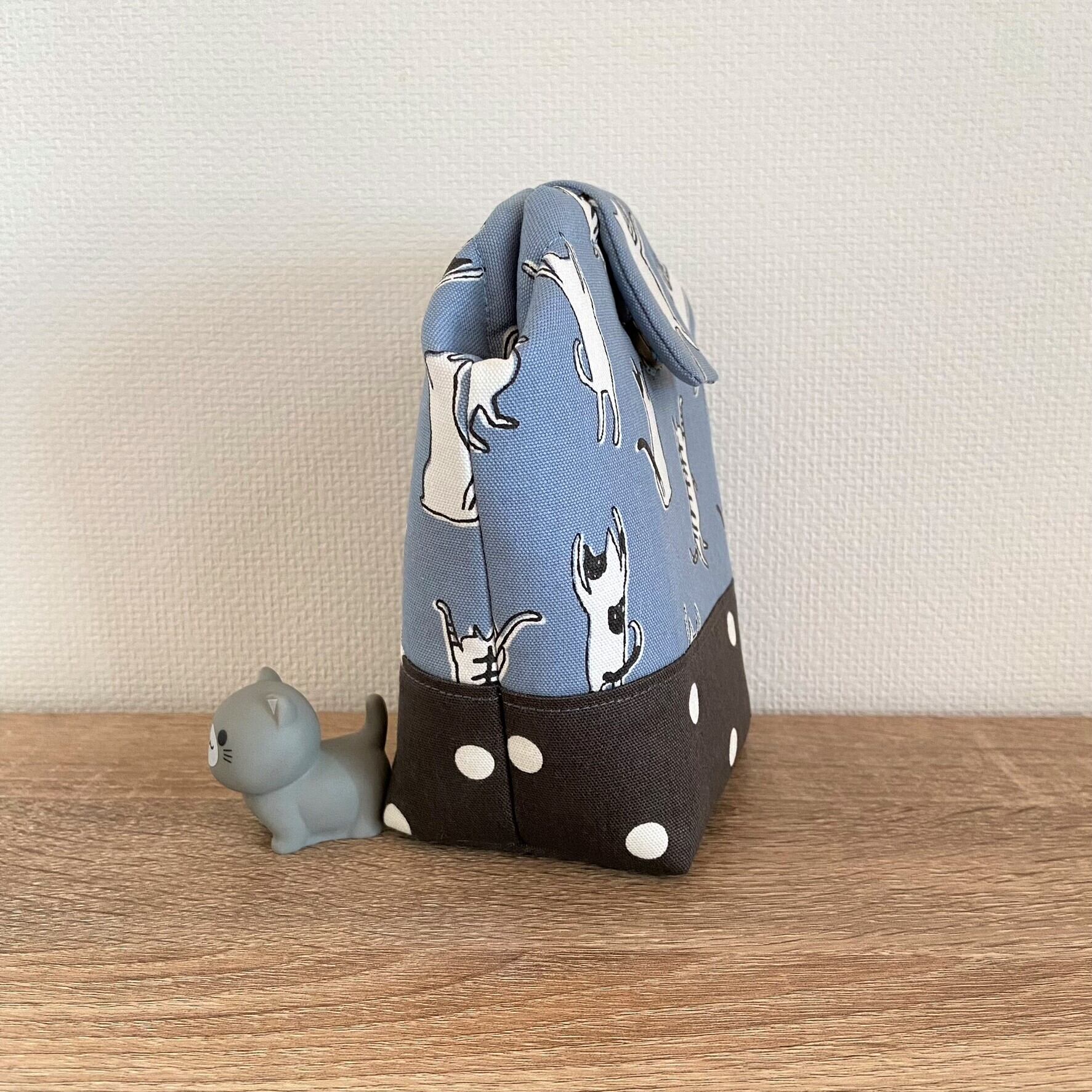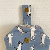マグネットホック付きのタブで開閉するワイヤー口金ポーチです。