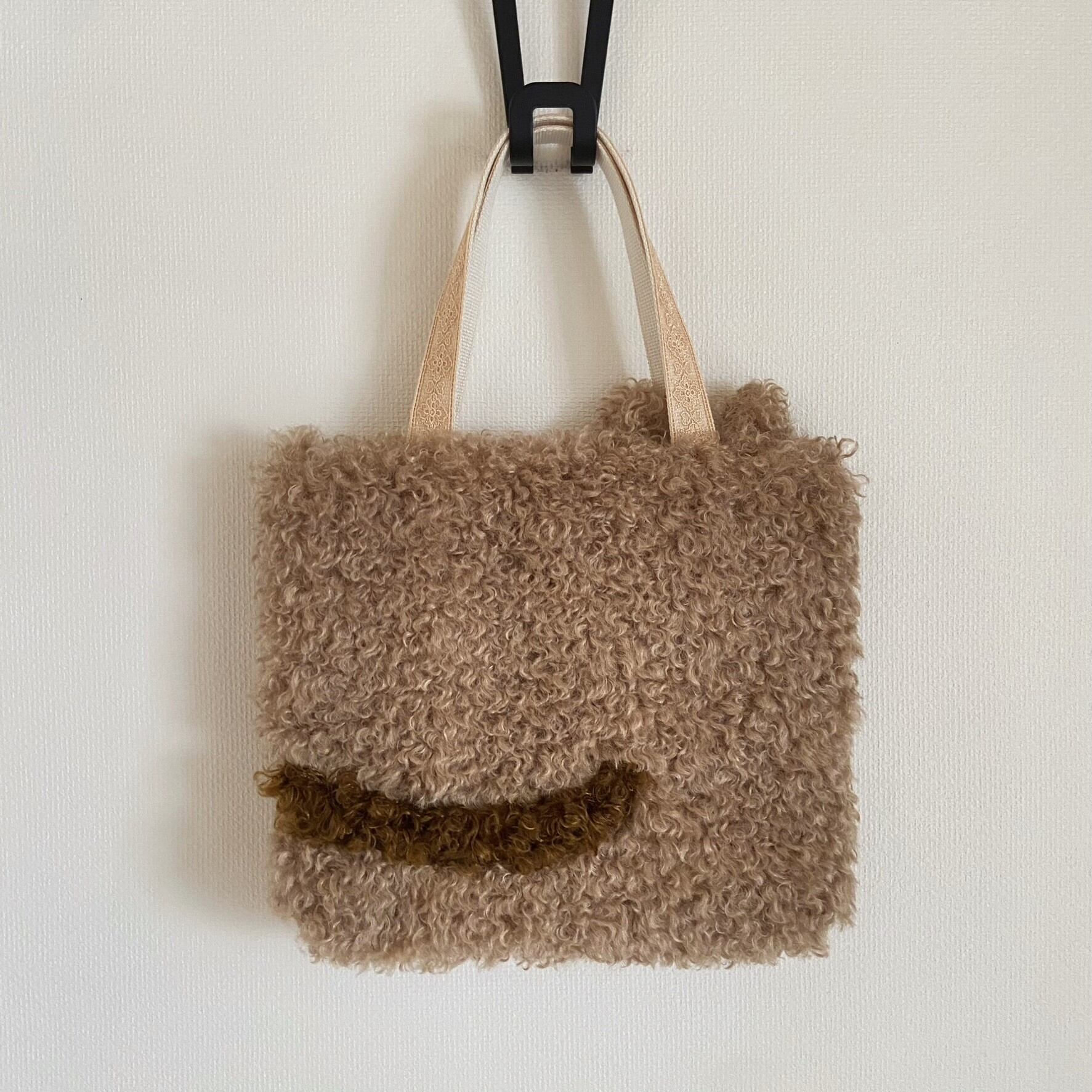 毛足20㎜ほどのくるくる巻き毛のファー生地で、ふわふわと柔かい手触りです。