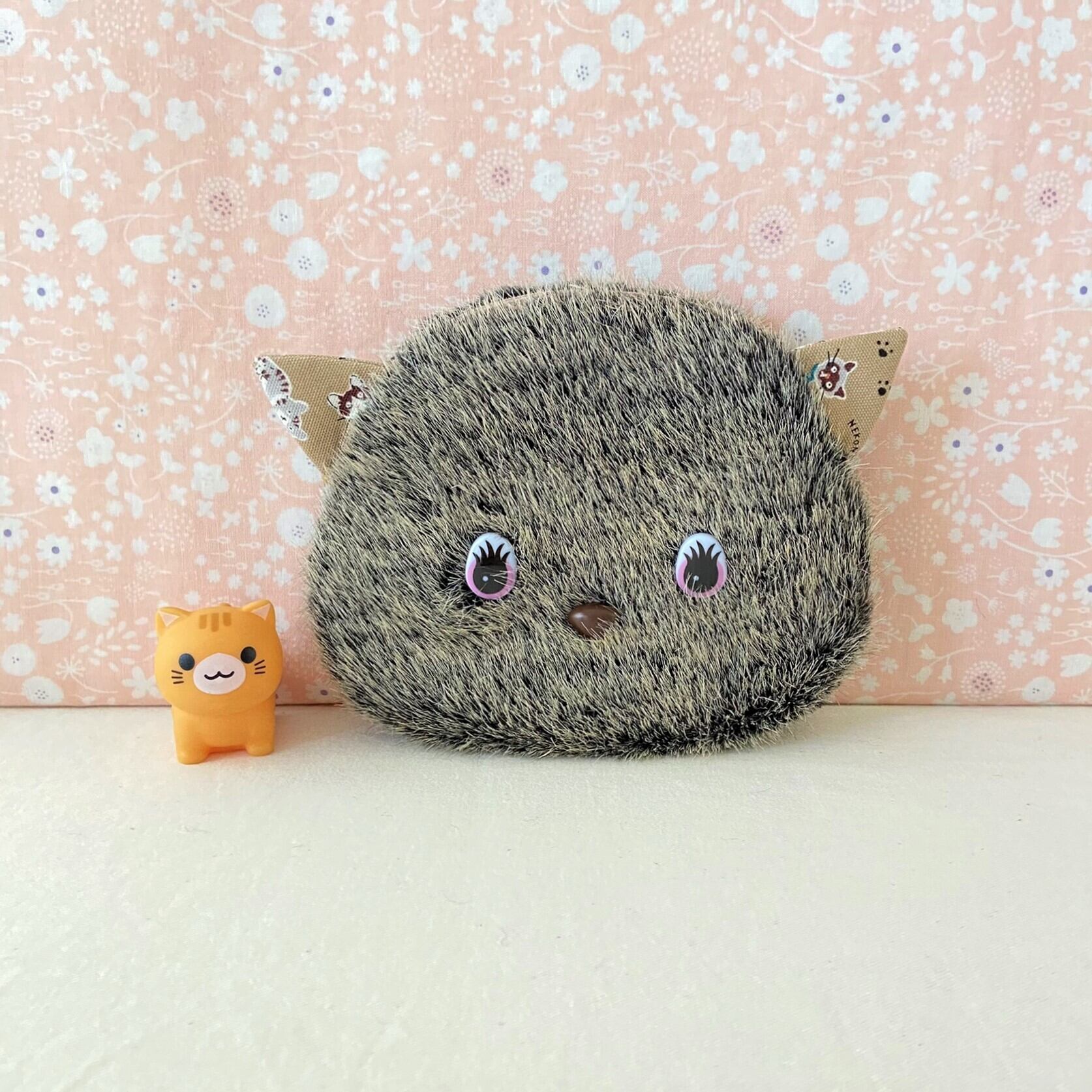 ファー生地を使用した猫型ポーチです。