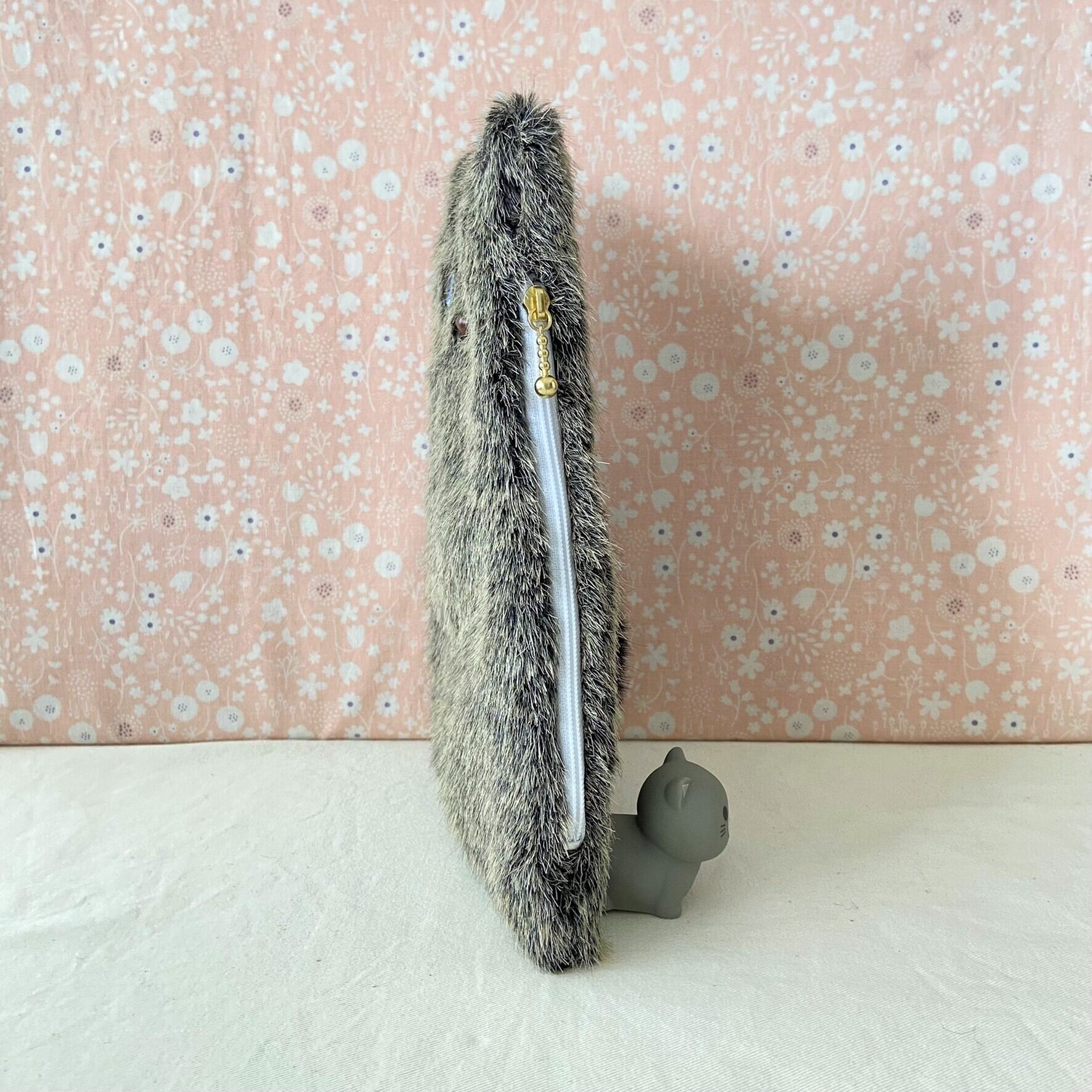 ファーの毛色は黒毛とベージュが混ざったグレーです。