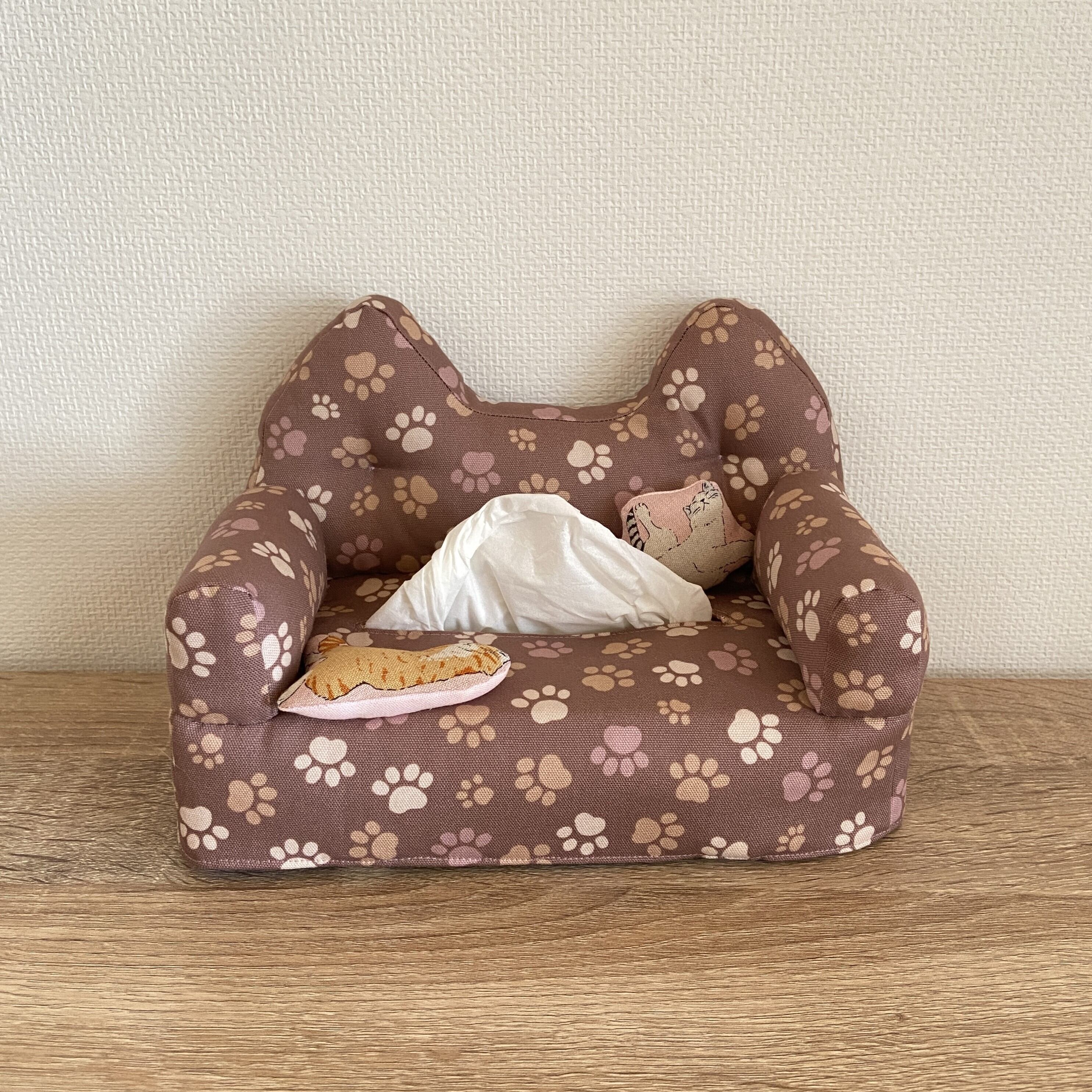 猫柄生地を使用し、背もたれもにゃんこ型になっています。
