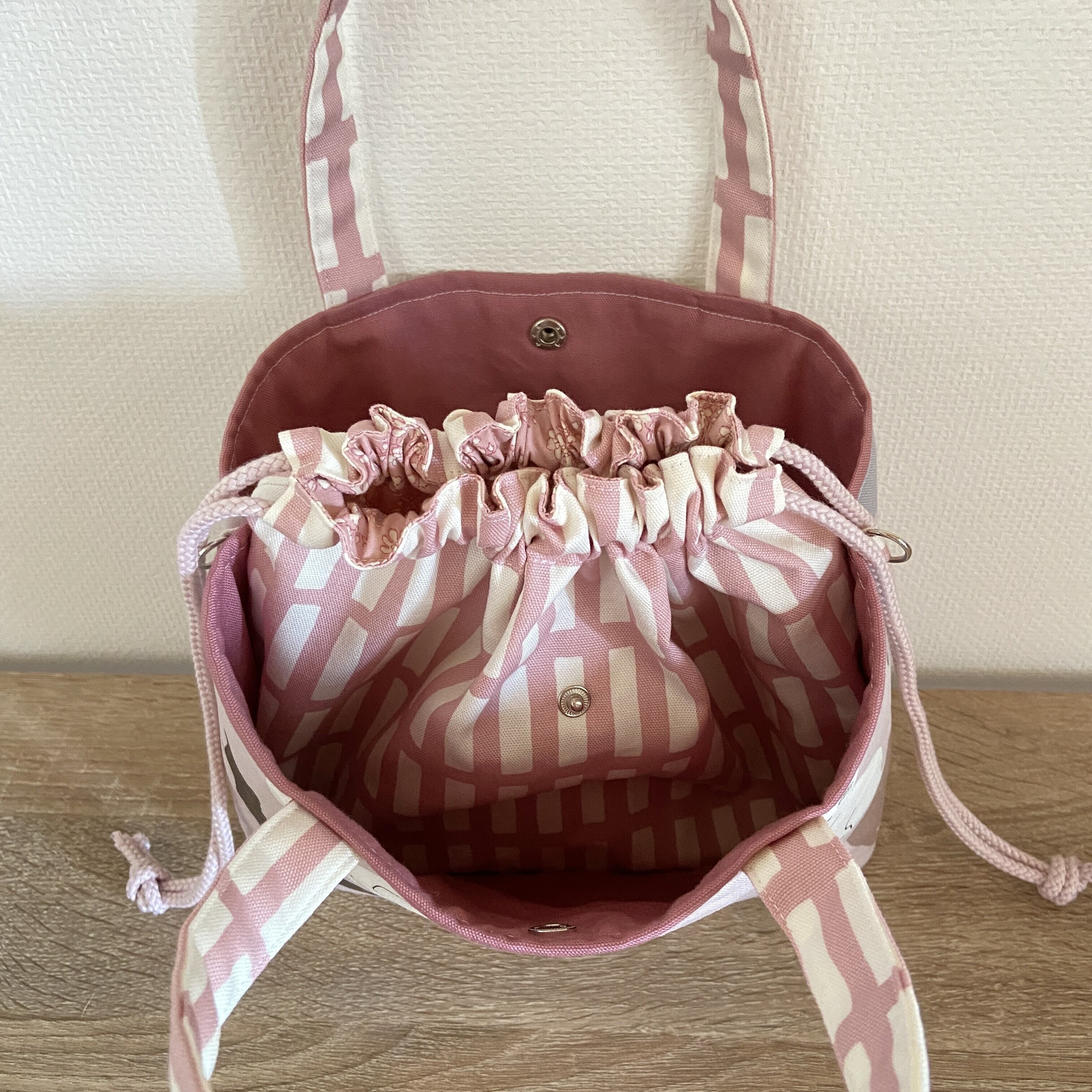 あおり巾着の2WAYバッグ