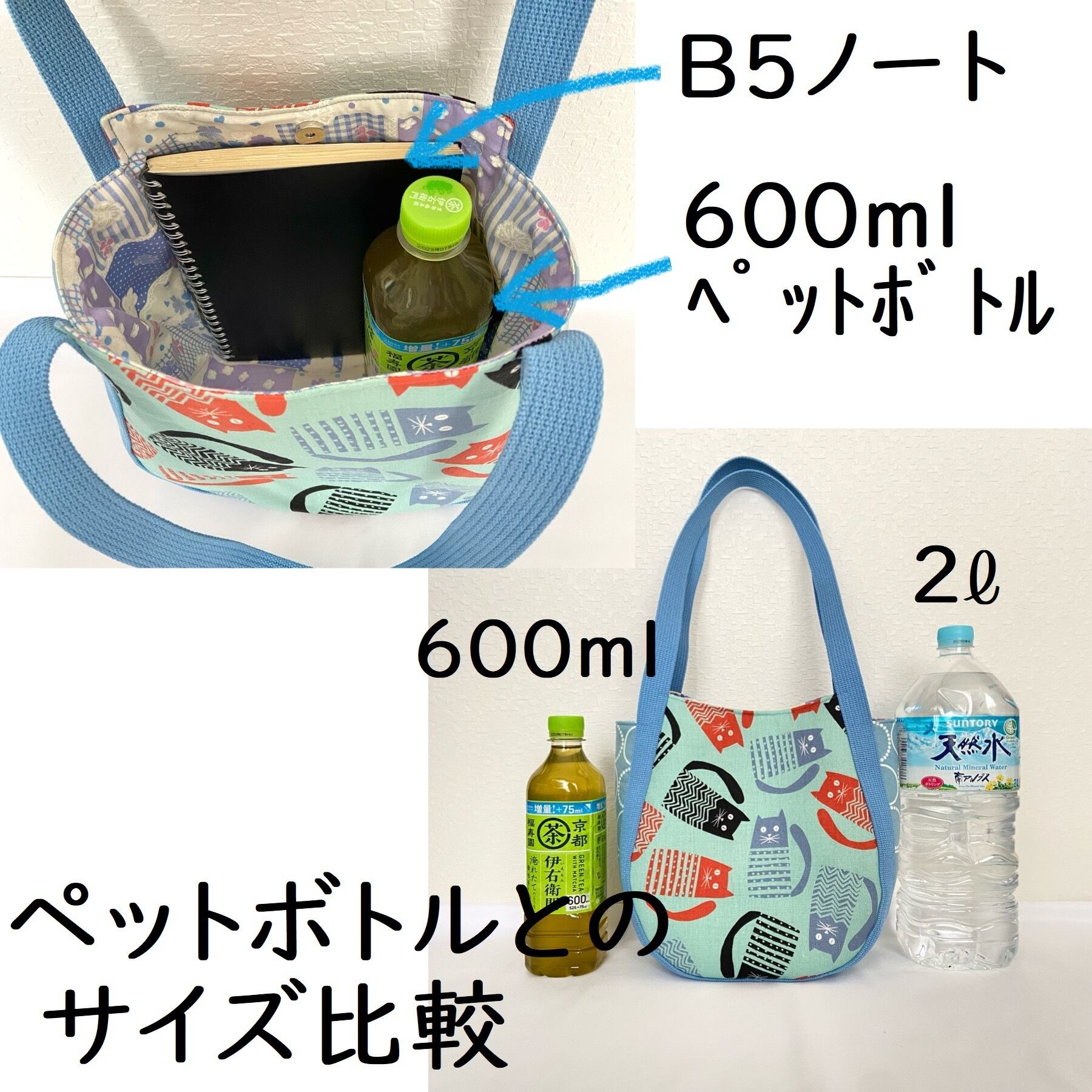 内ポケットは横幅はバッグと同幅、深さ最長16㎝のものを2分割にしてつけました。