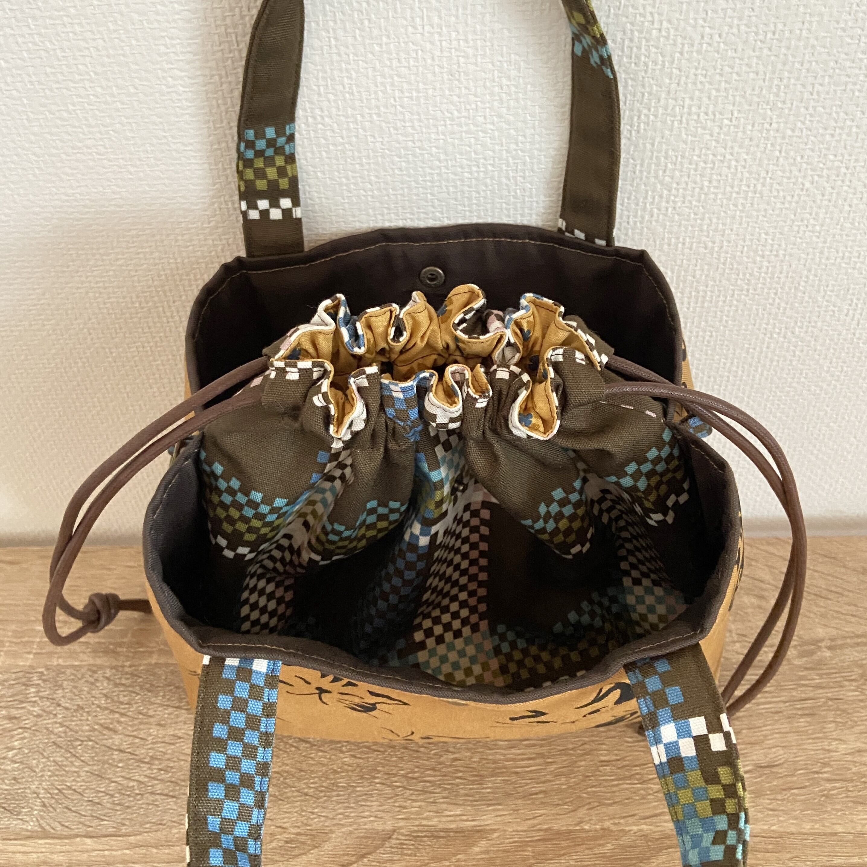 バッグ本体高さ16.5㎝ 巾着袋高さ23cm まち9cm
