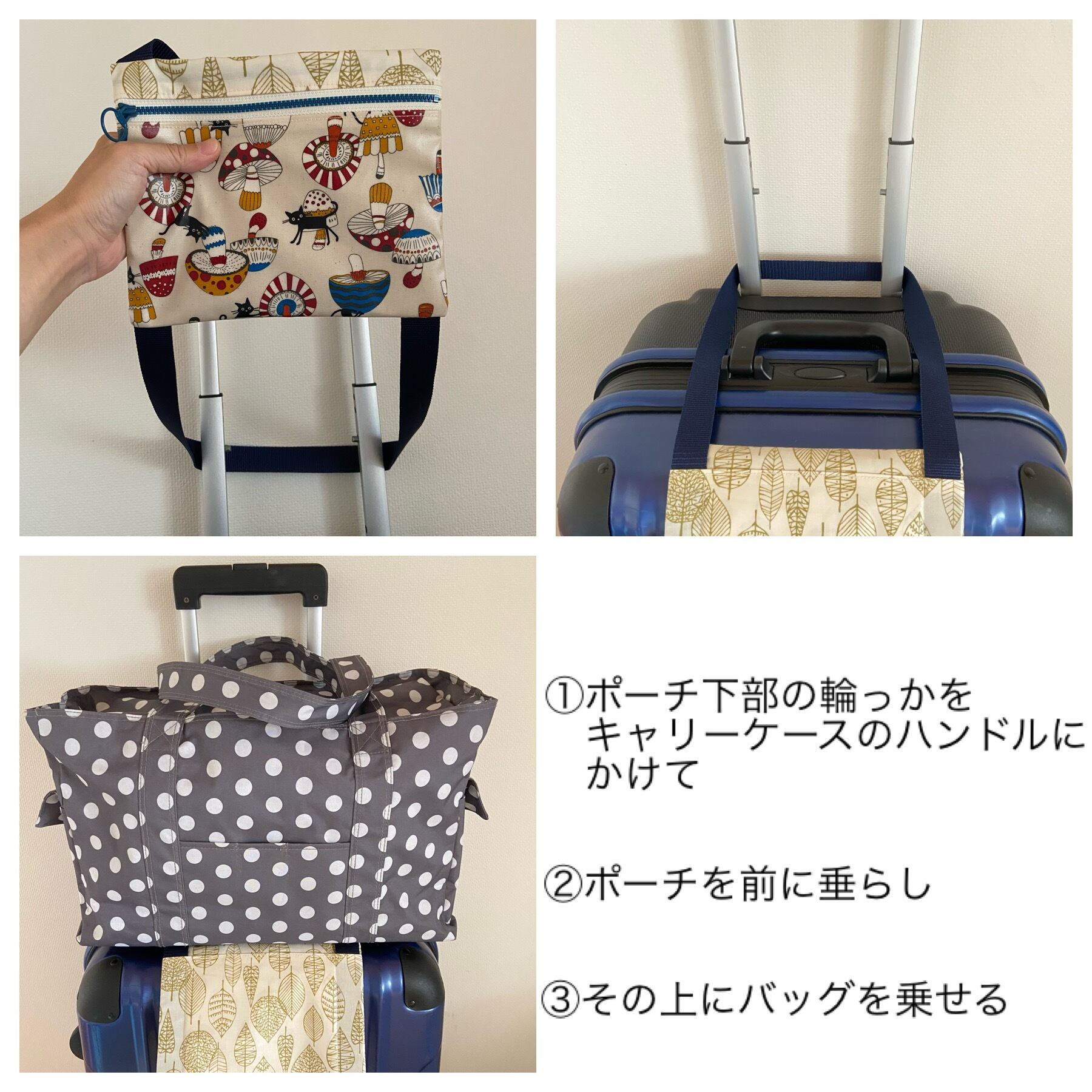 キャリーケースの上に置いたバッグを固定できるポーチです。