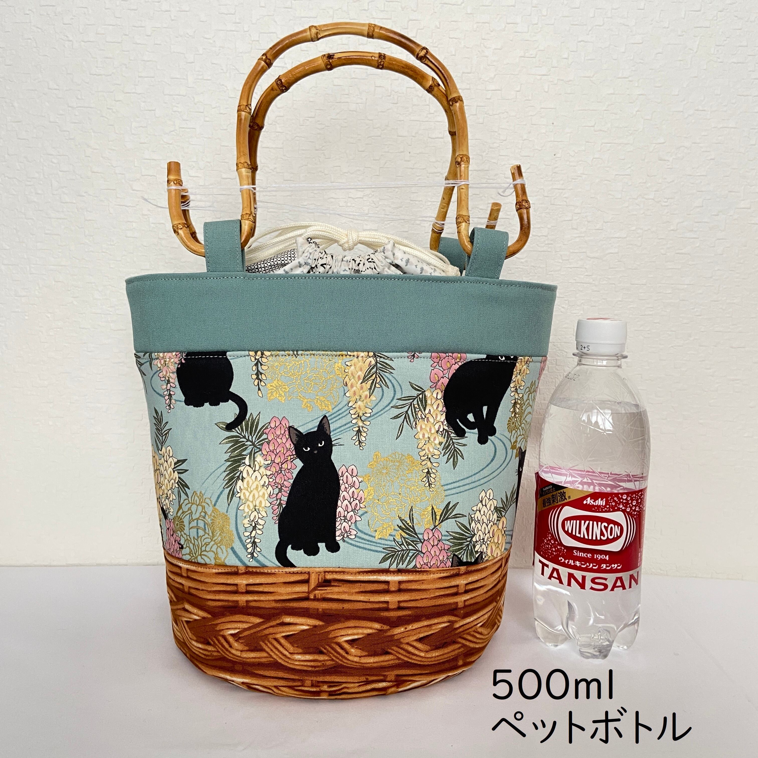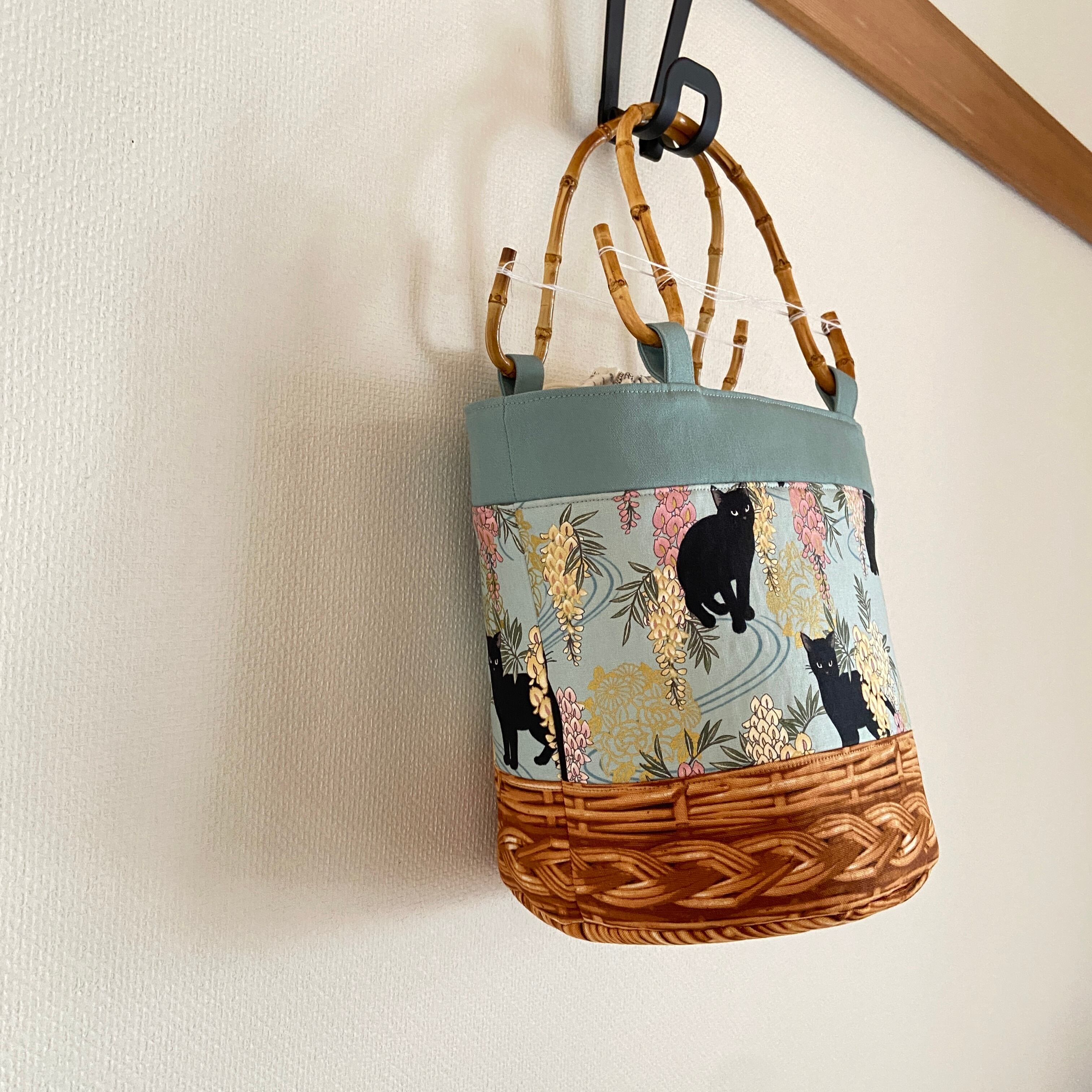 底の部分にはラタンのリアルプリントを合わせ、かごバッグ風に仕上げました。