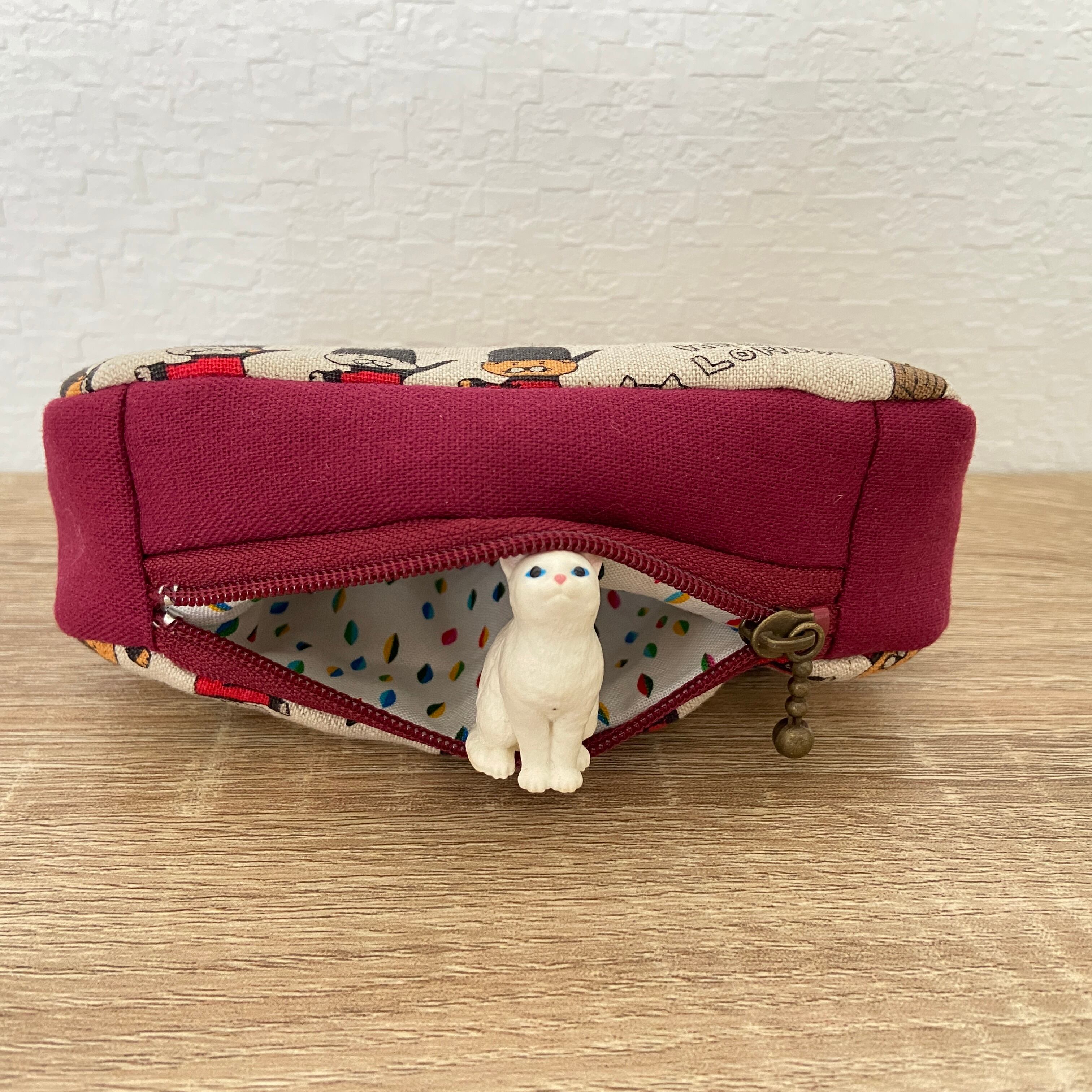 がま口ポーチのまちに10㎝ファスナーを使用したポケットを付けました。