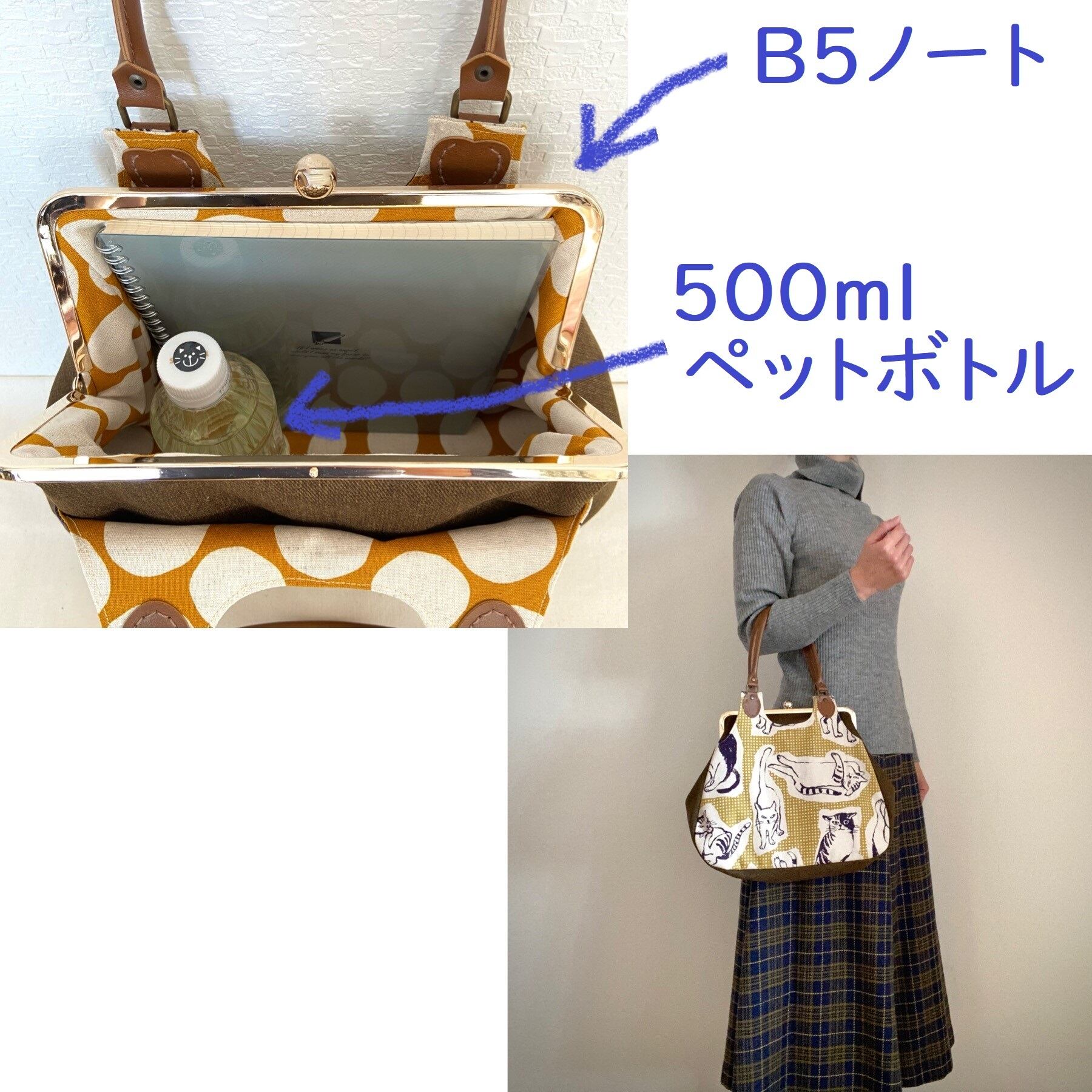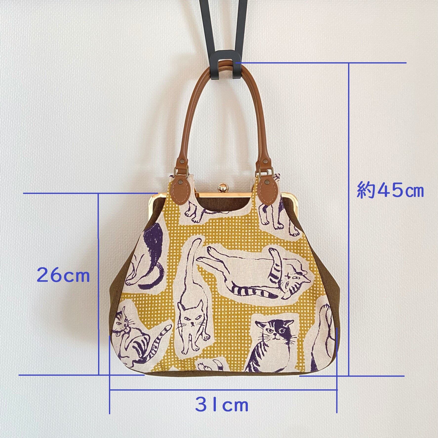 サイズ:幅最長31㎝ 高さ26㎝(がま口金具上辺までの高さ) まち最長10.5㎝