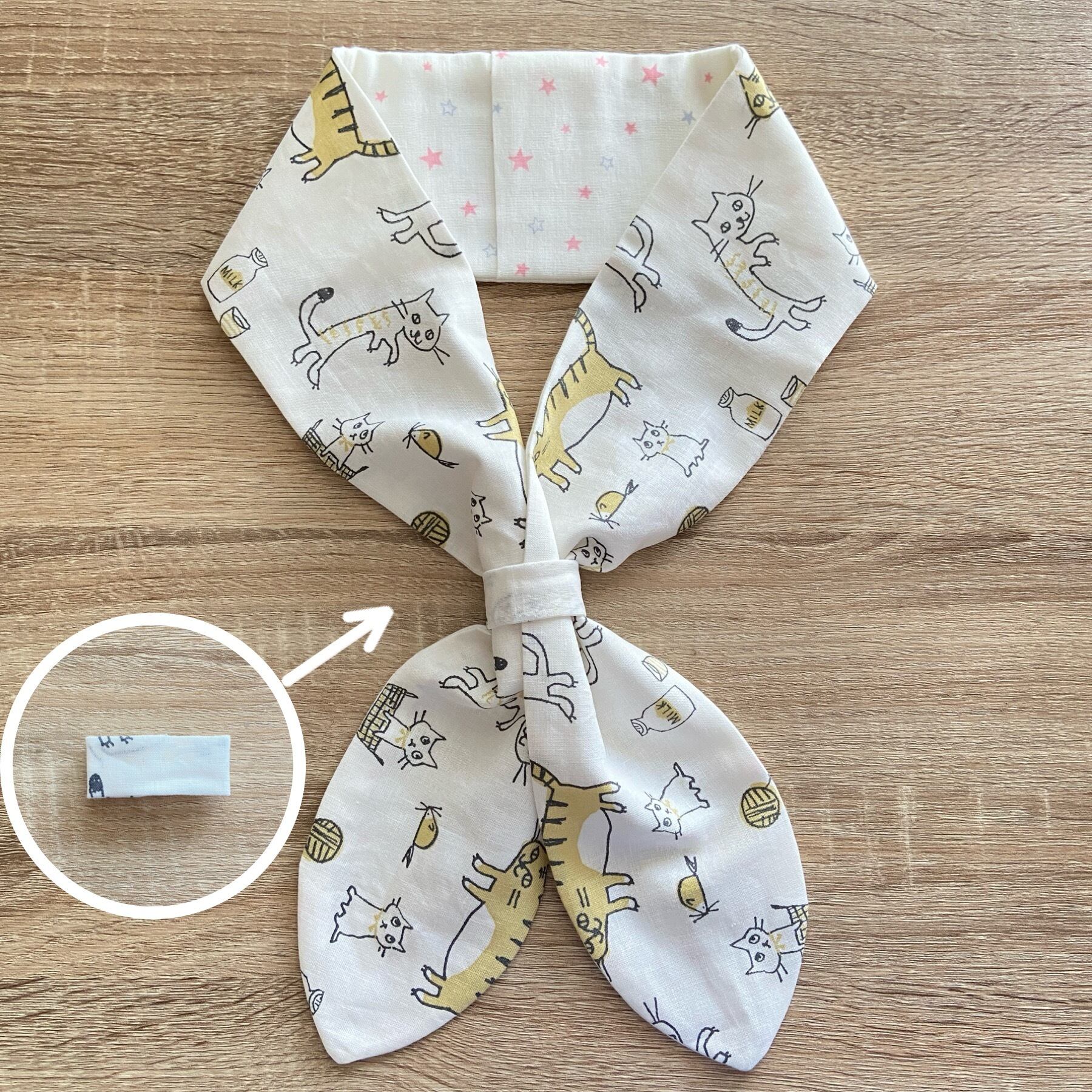 共布で作ったループ付きなので、端を通すだけで形が決まります。