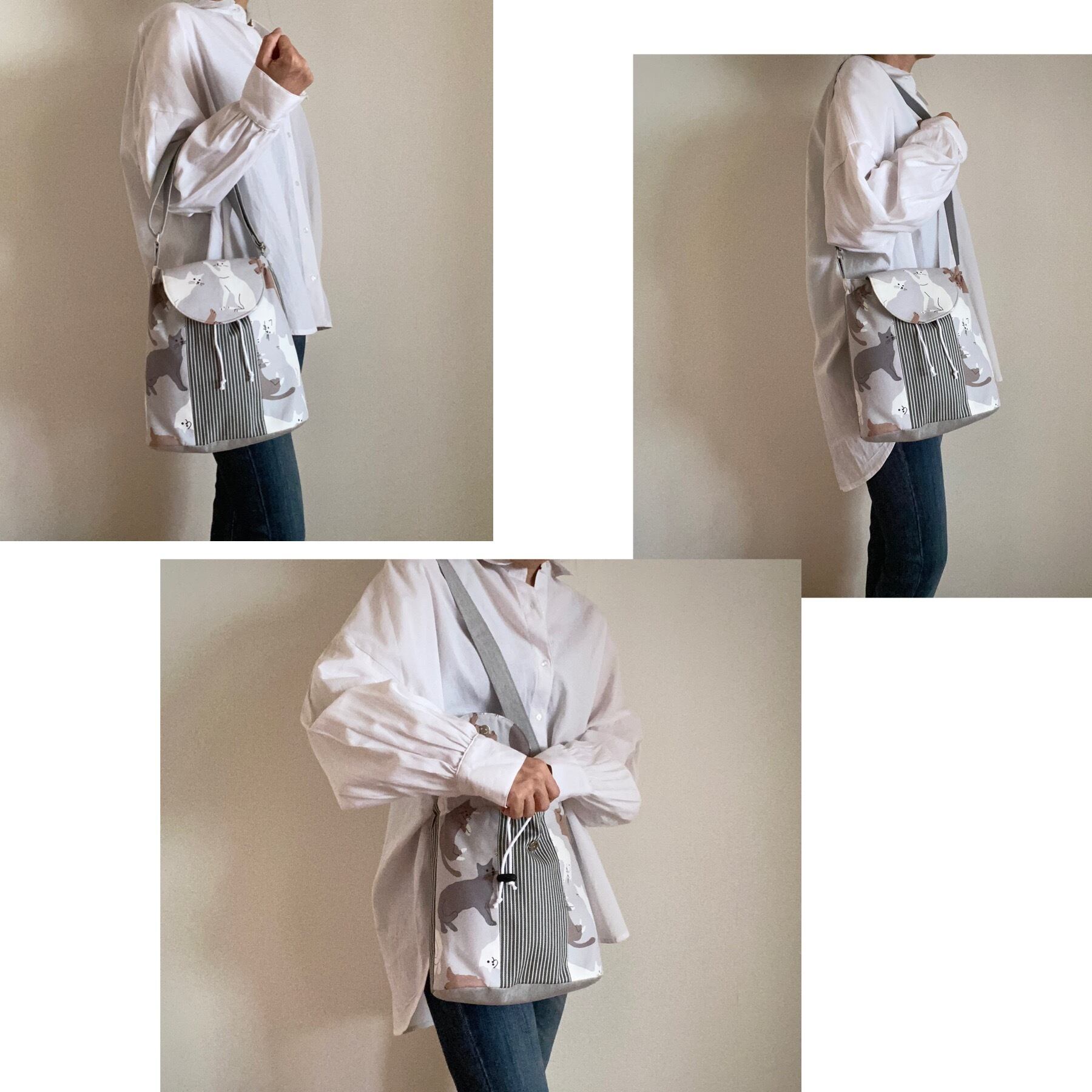 本体は猫柄と柄布を6枚交互に縫い合わせました。