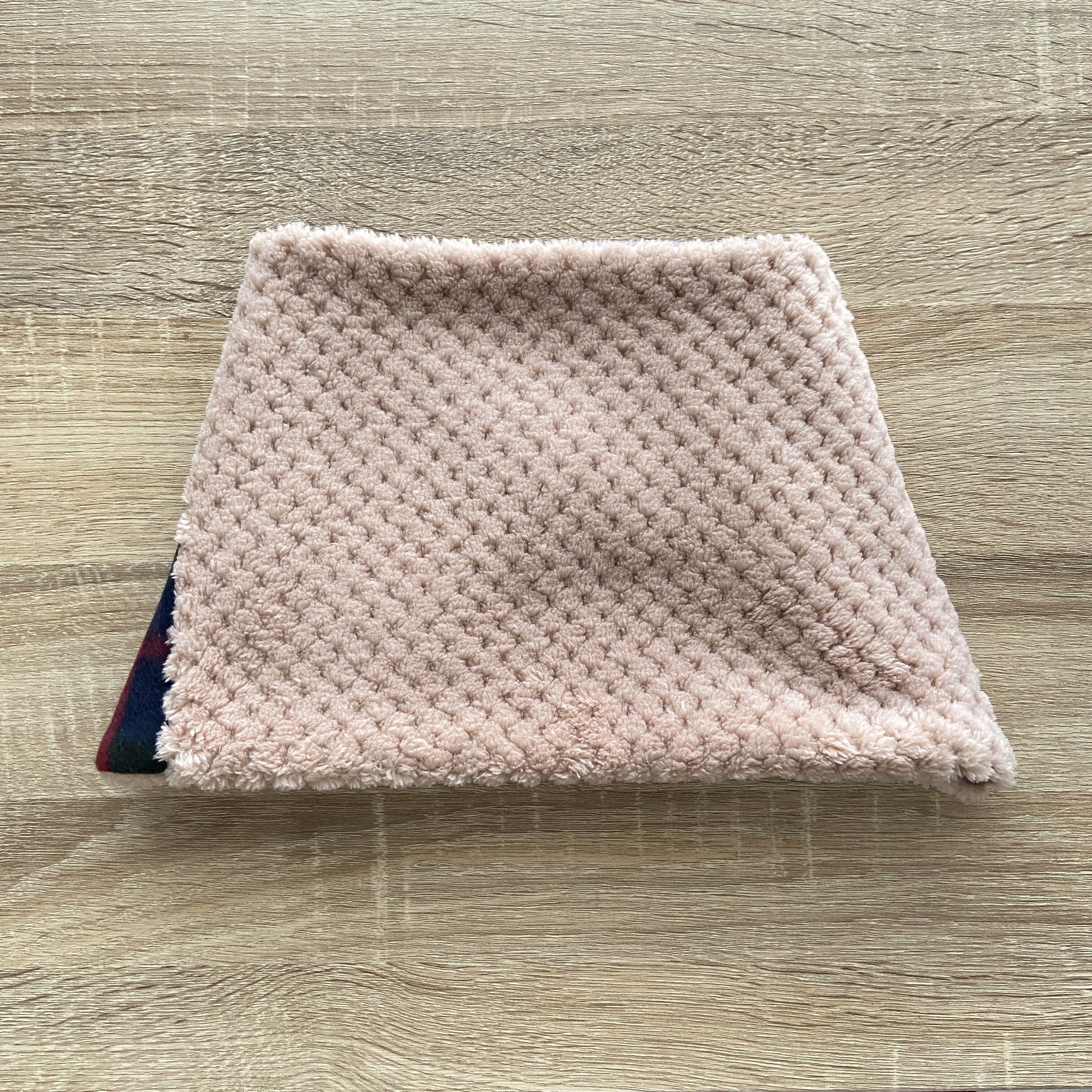 猫柄フリースとチェックフリース生地、パイナップルボアを合わせたネックウォーマーです。