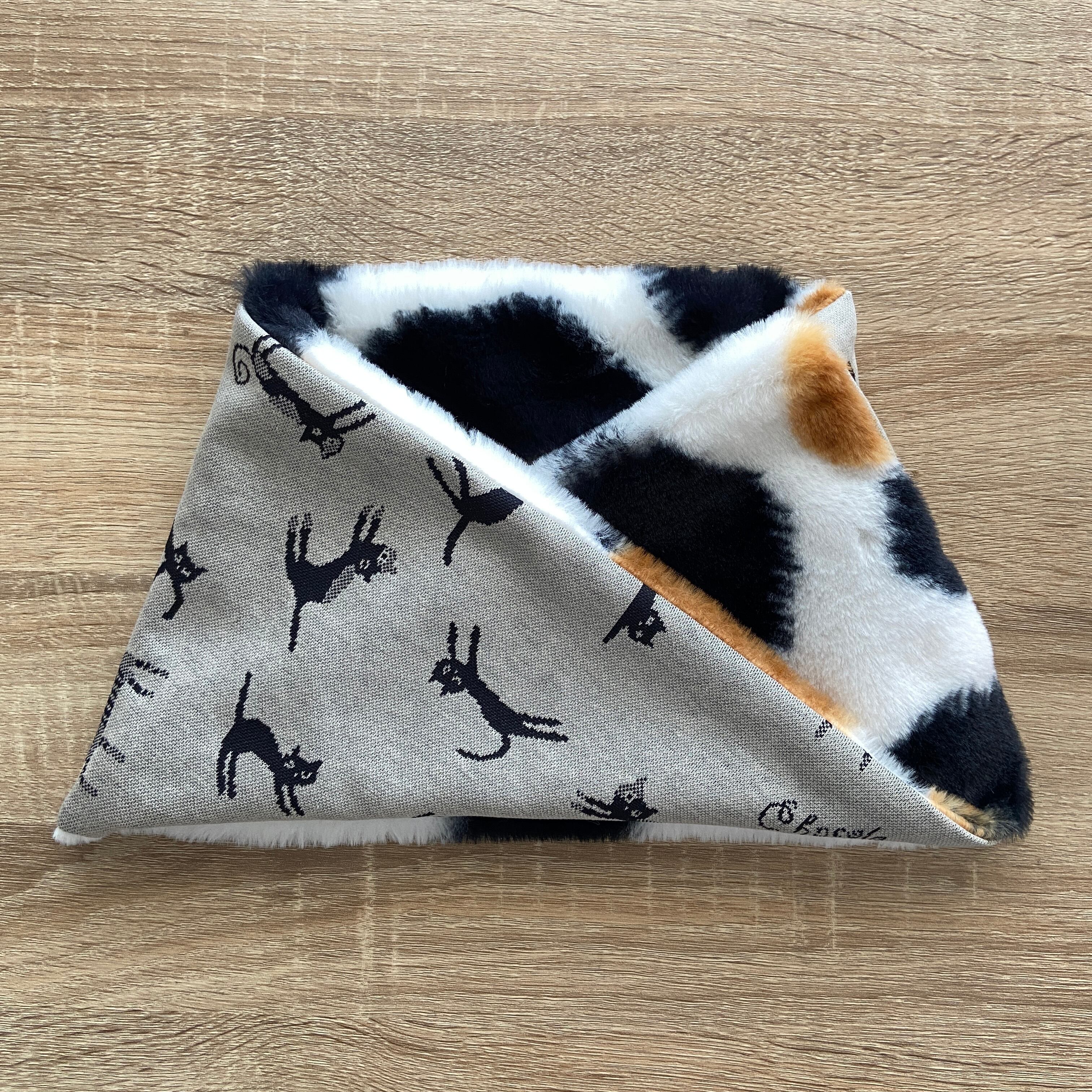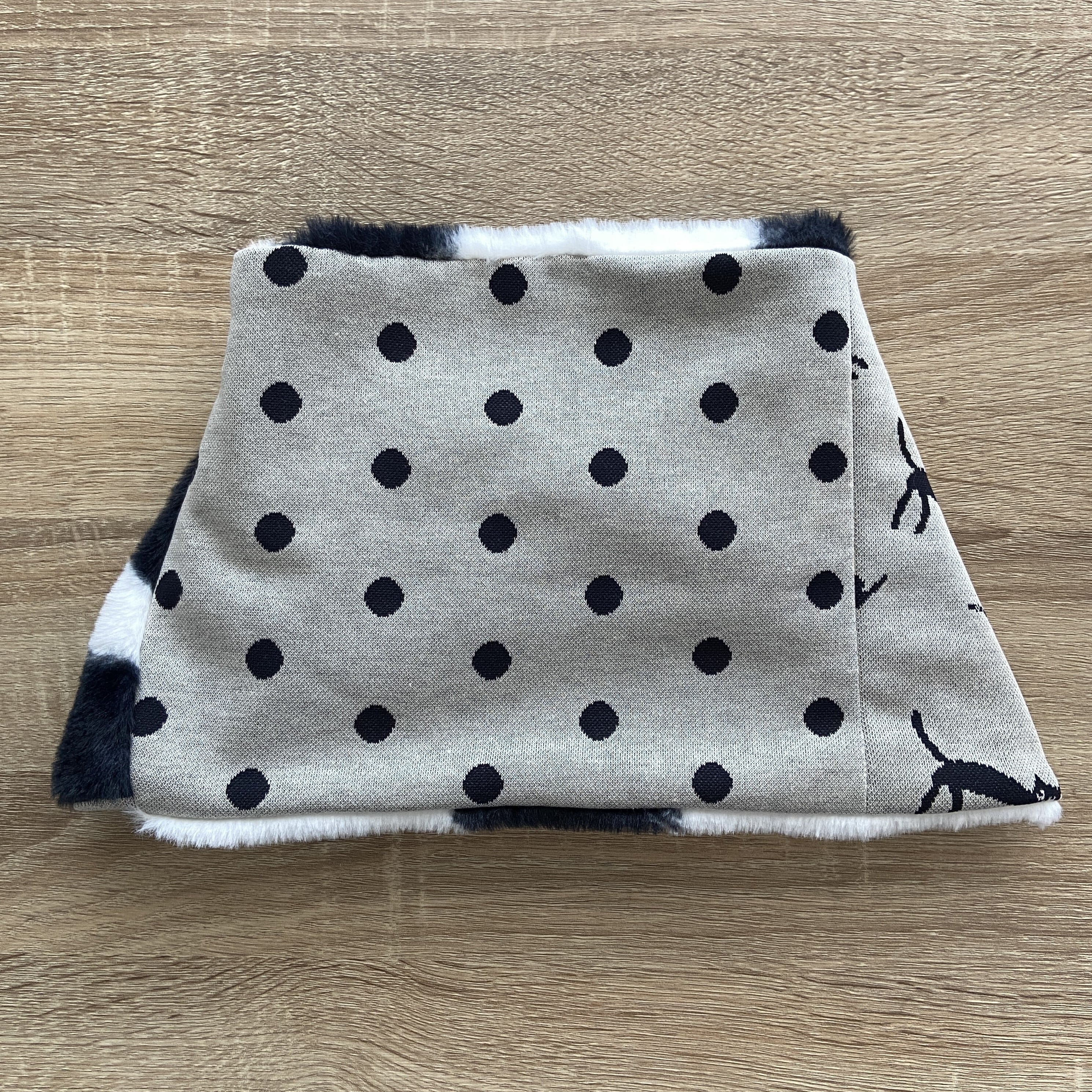 猫柄とドット柄のジャガードニット、三毛柄ファーを合わせたネックウォーマーです。