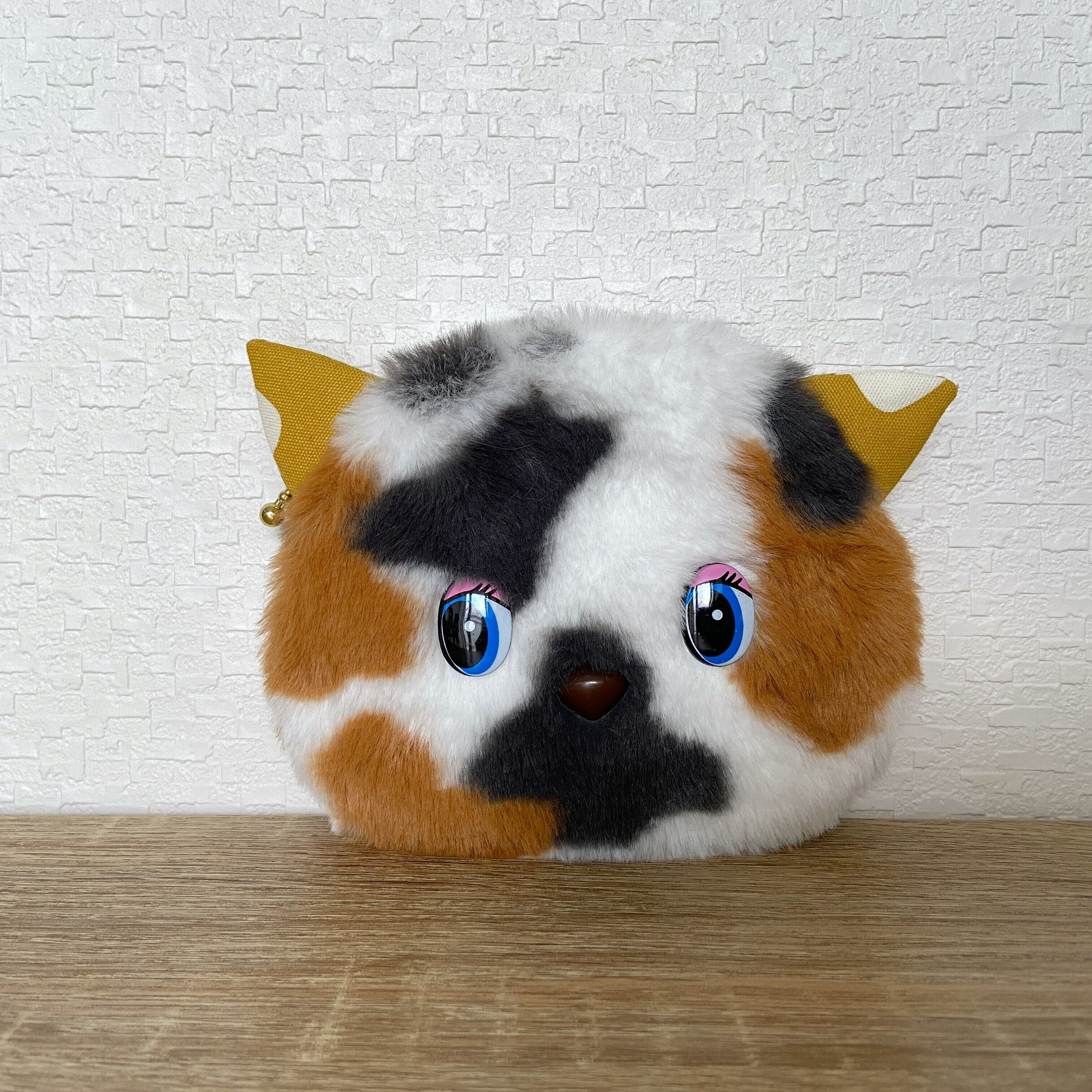毛足10㎜ほどの三毛柄ファー生地で、やさしい手触りです。