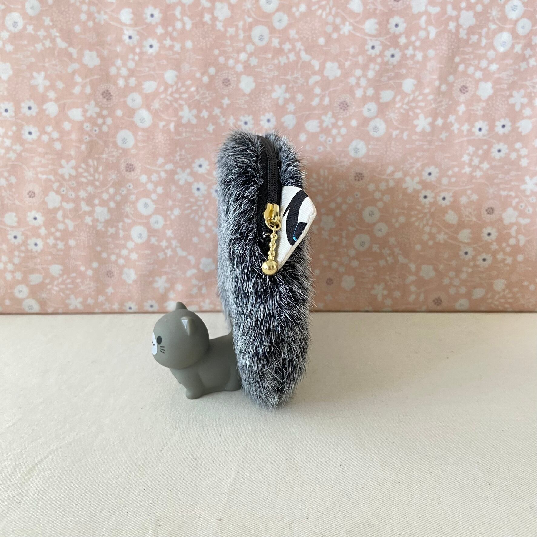 ファーの毛色は黒毛と白毛が混ざったグレーです。