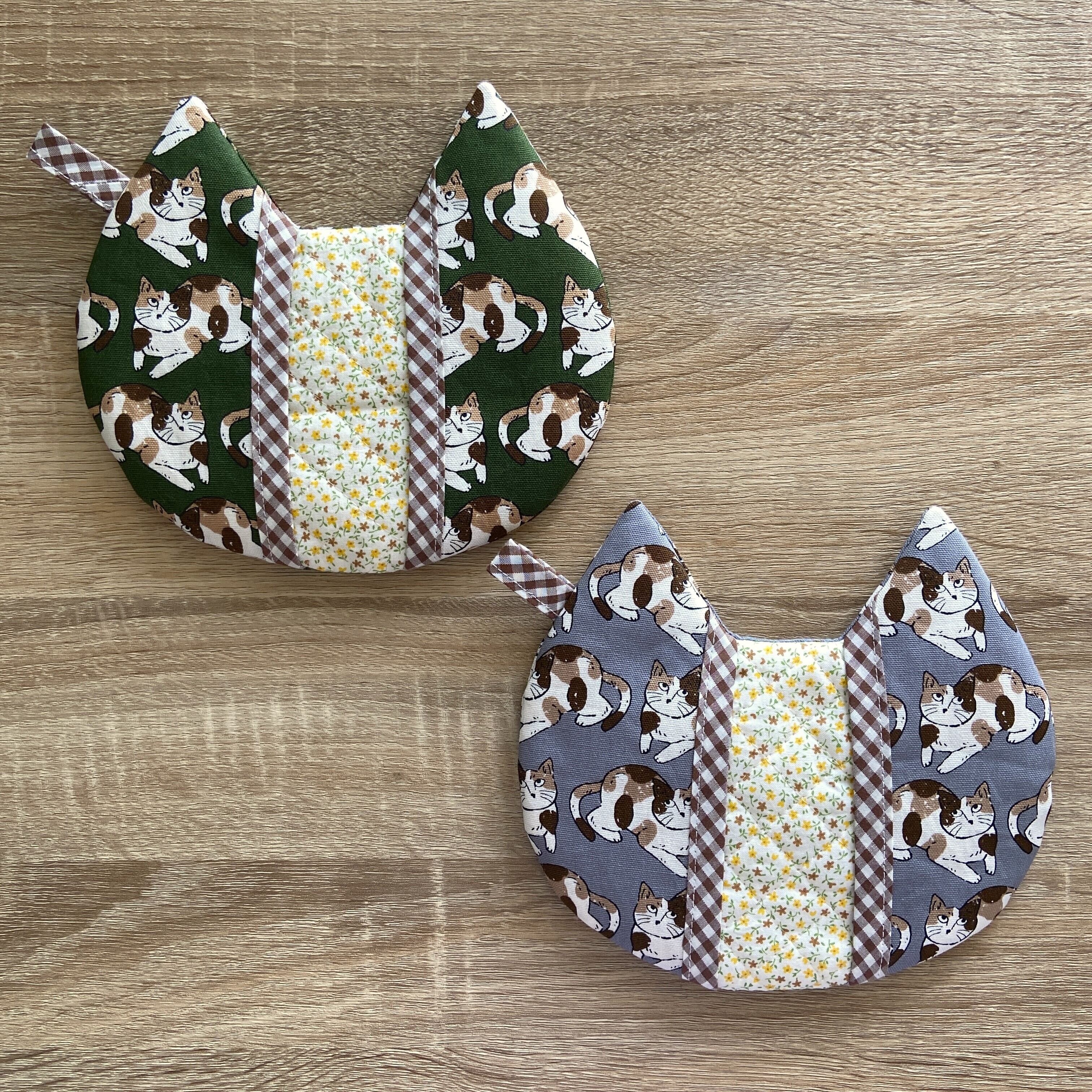 猫型の鍋敷き兼鍋つかみです。