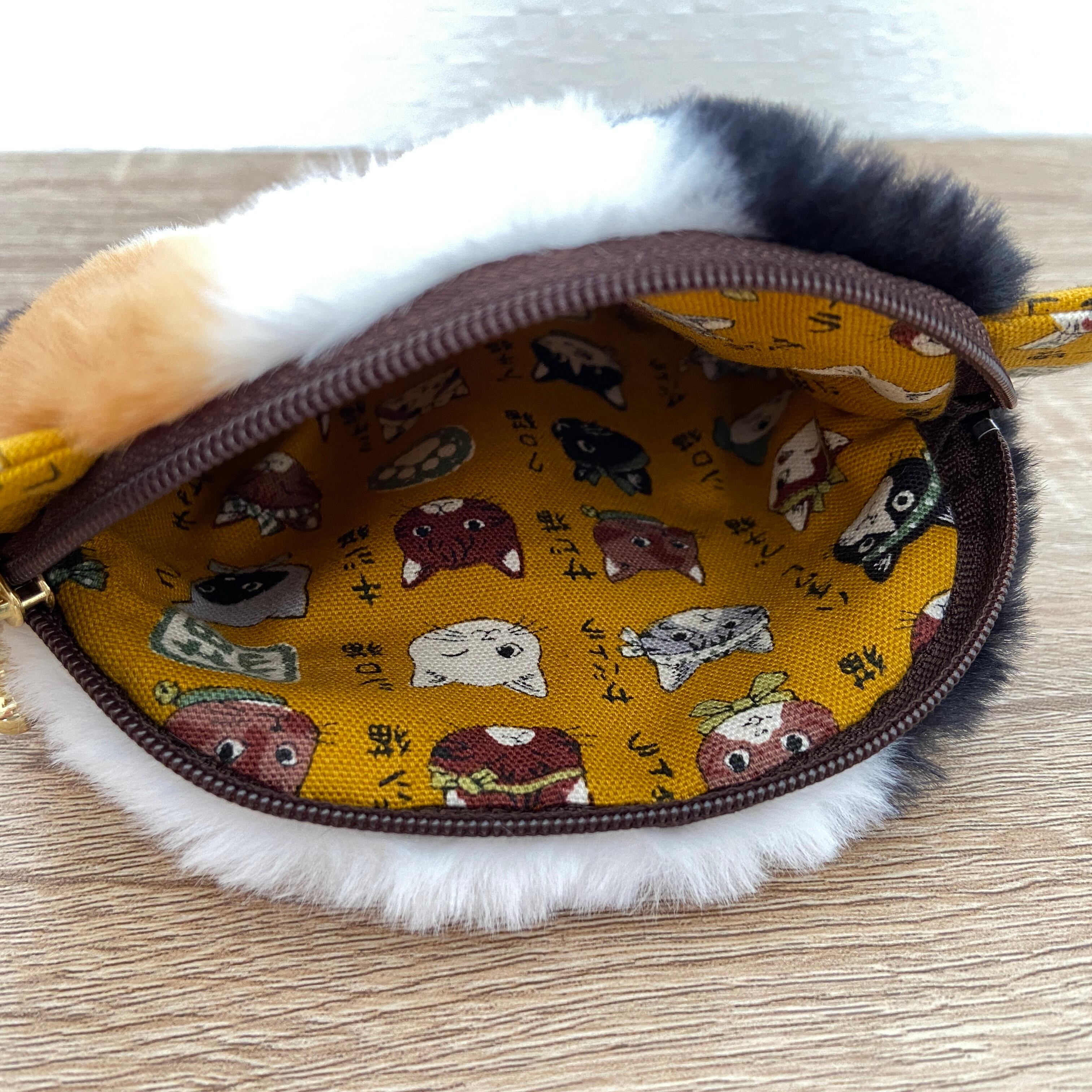 毛足10㎜ほどの三毛柄ファー生地で、やさしい手触りです。