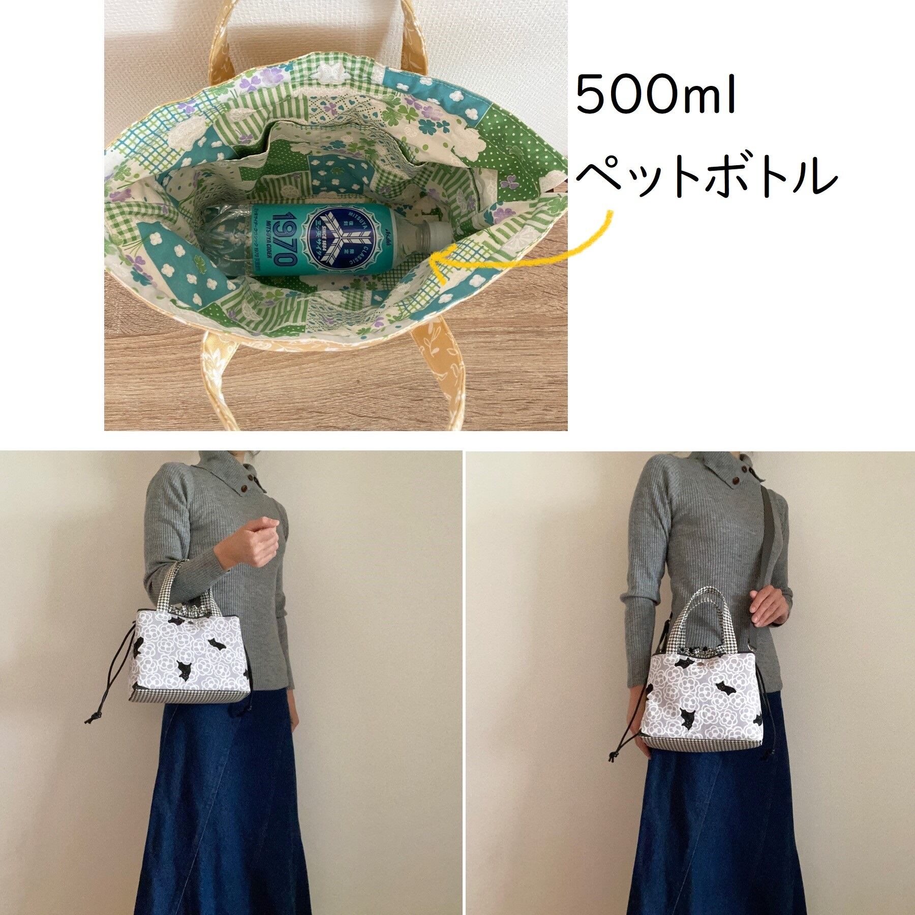 バッグ本体高さ16.5㎝ 巾着袋高さ23cm まち9cm