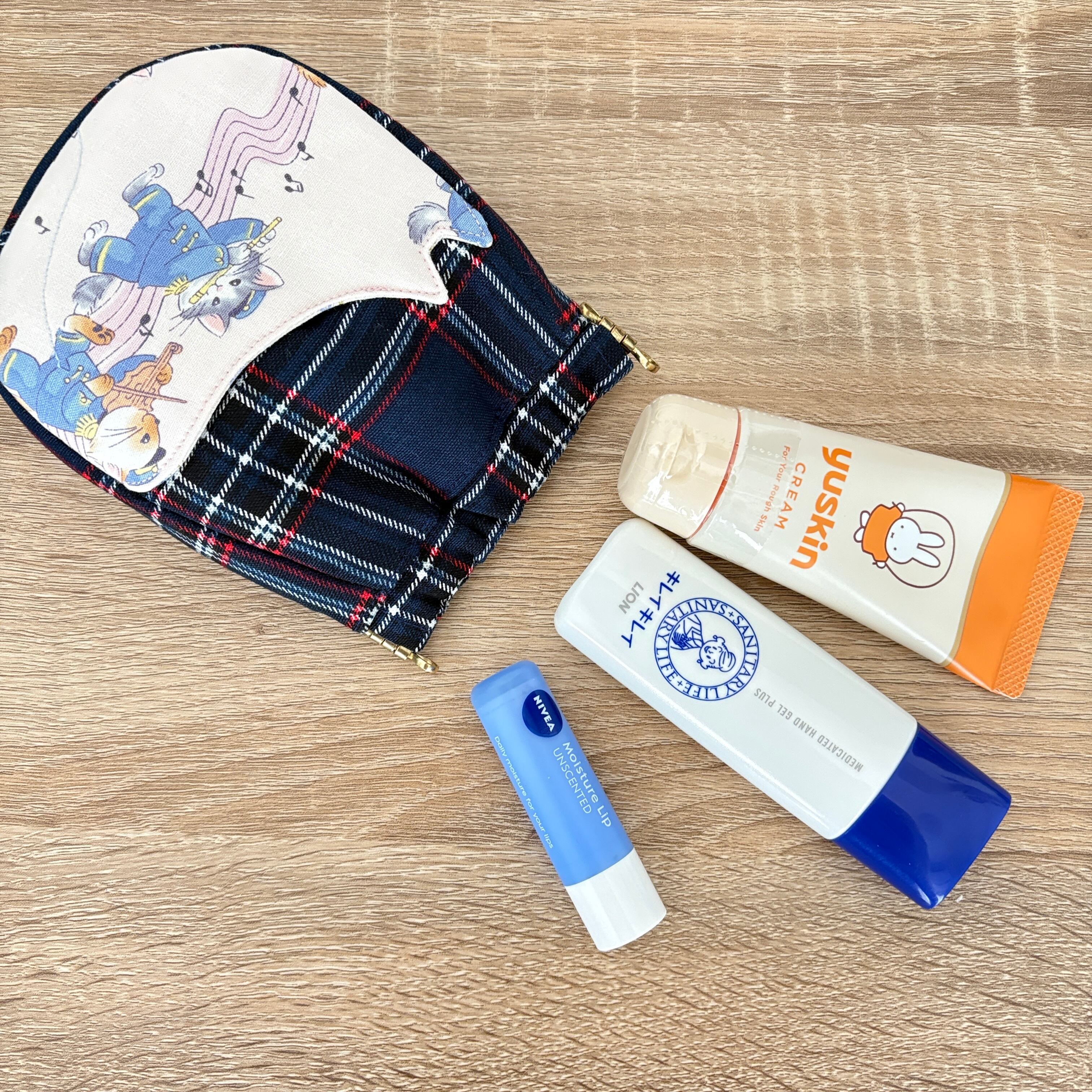 バッグの持ち手等に提げると小物をさっと取り出せて便利です。