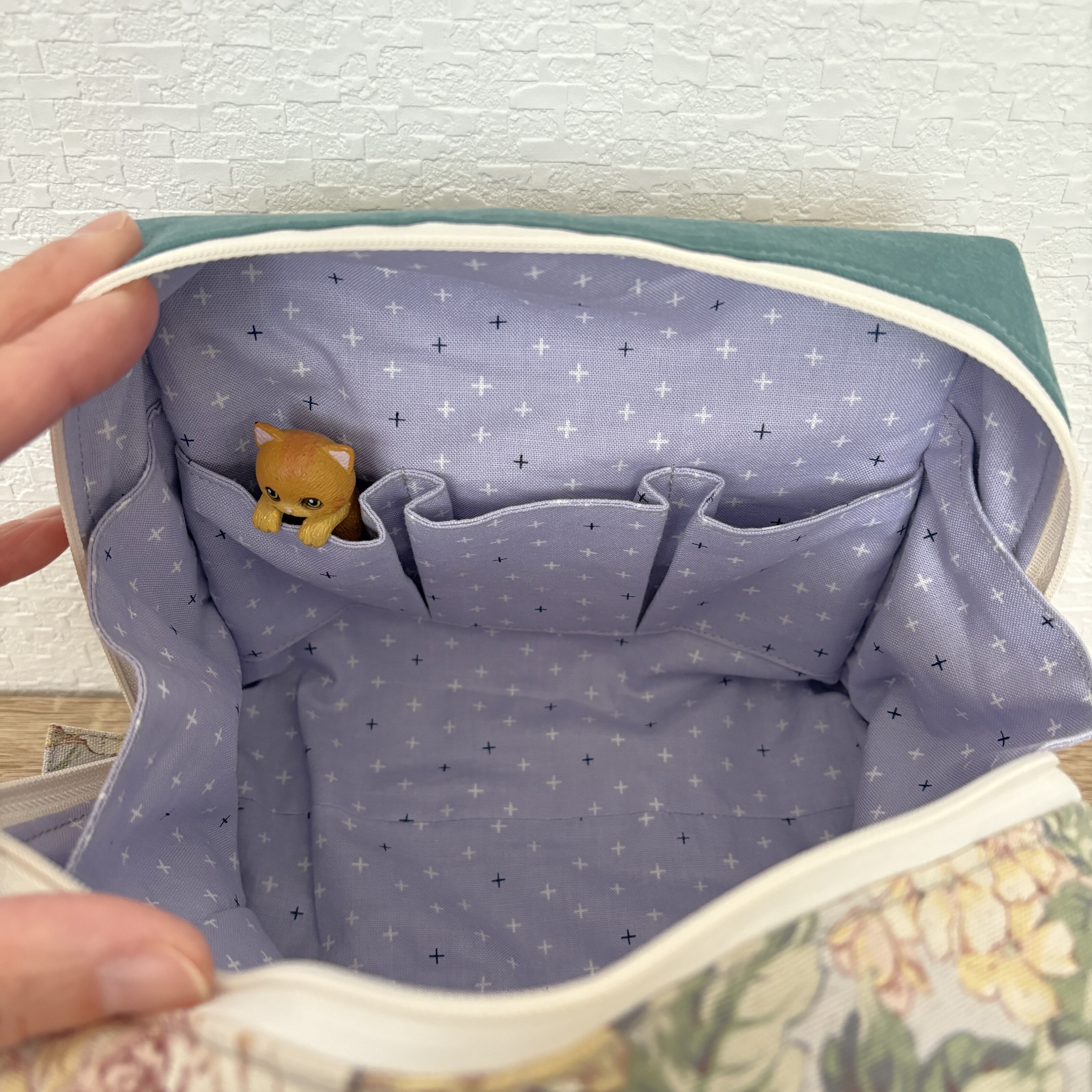 こぼれ止めの脇布がついているので中身が飛び出す心配もありません。