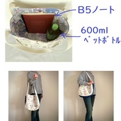 内ポケットは、横幅がバッグと同幅、深さ最長21㎝のものを2分割にしてつけました。