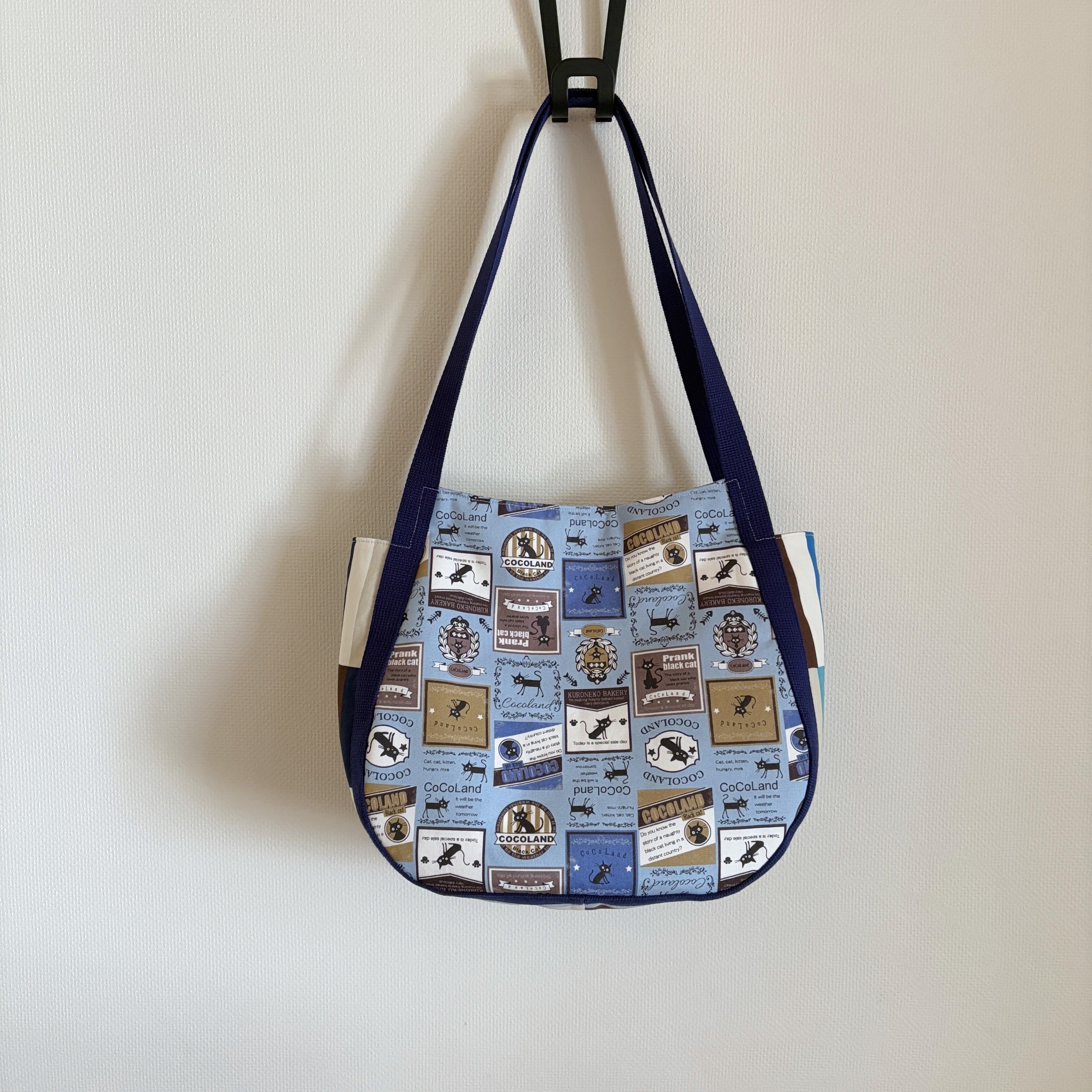 肩から提げたままでも中身の出し入れができるよう長めの持ち手を付けました。